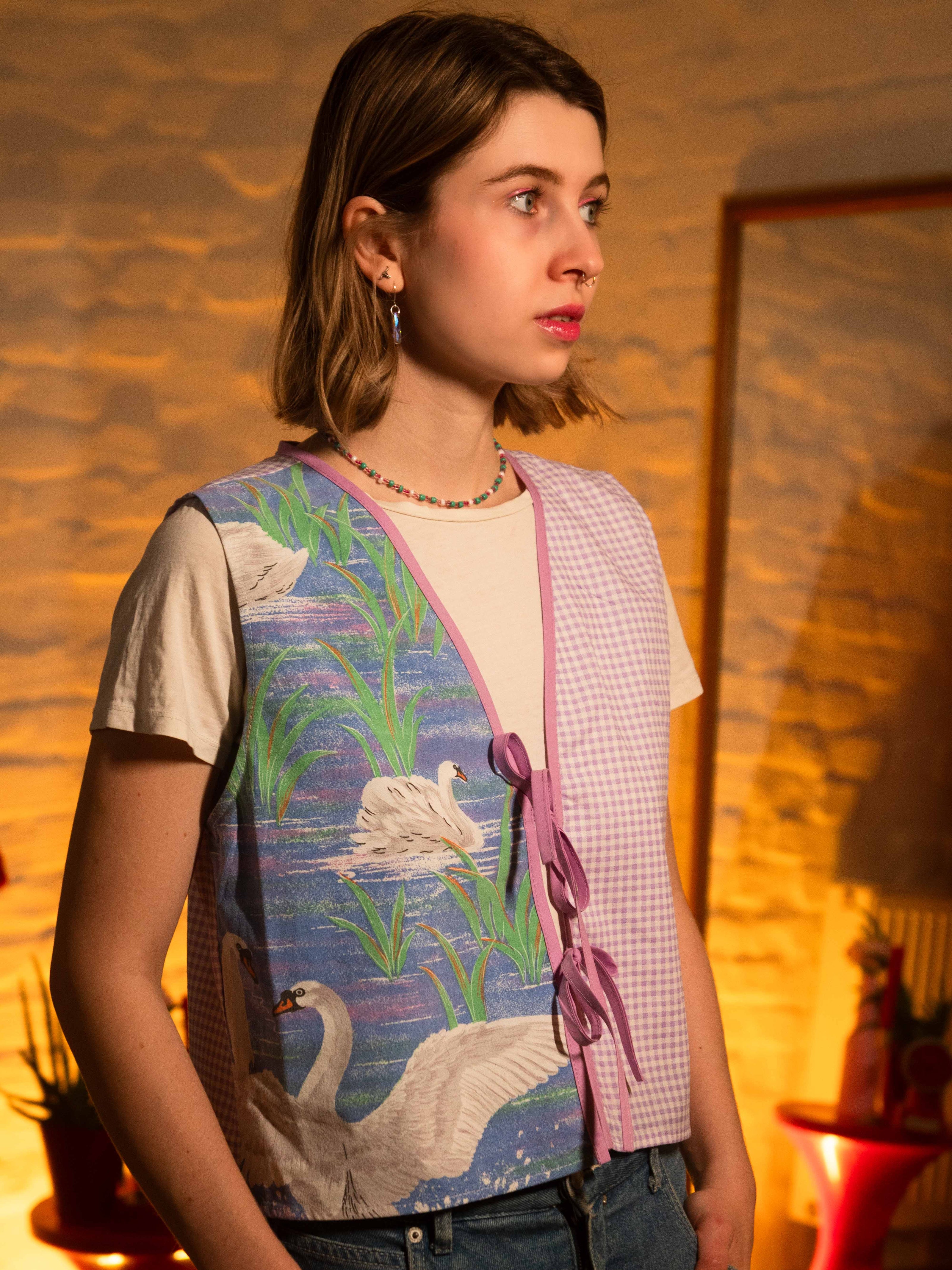 Számomra az egyik legfontosabb cél, hogy fenntartható módon készítsem el a ruhákat. Ezért már meglévő lakástextilekkel dolgozom, hogy minden darab környezetbarát és különleges legyen. Így nincs két egyforma ruha, pont úgy, ahogy nincs két egyforma ember sem.