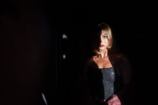Csillogós fekete fűzős top