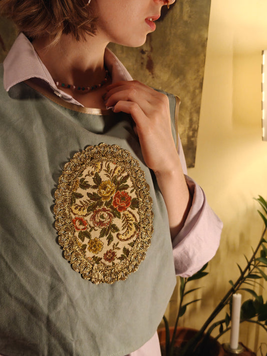 Hímzett rózsa mellény