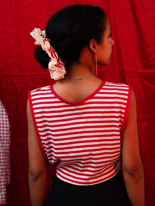 Piros-fehér csíkos hajgumi