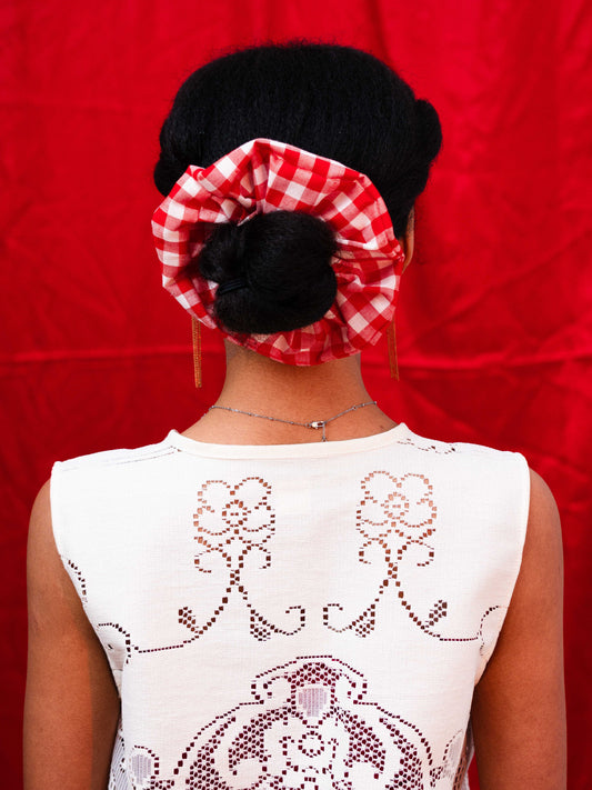 Piros kockás hajgumi