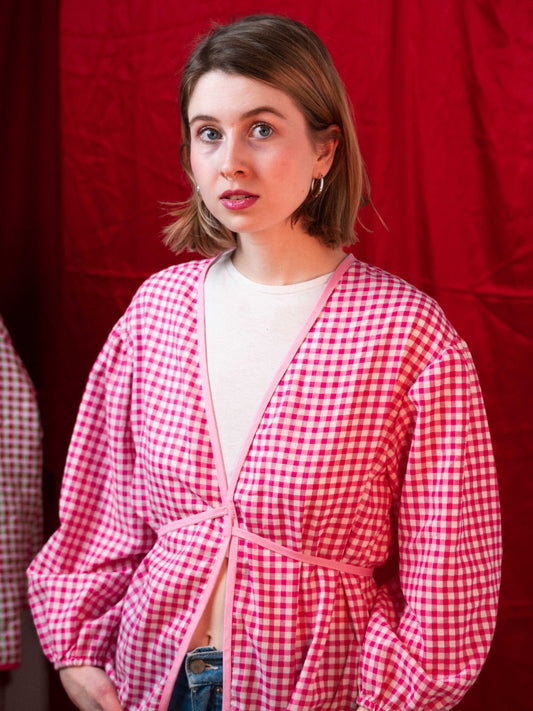 Rózsaszín kockás puffos felső