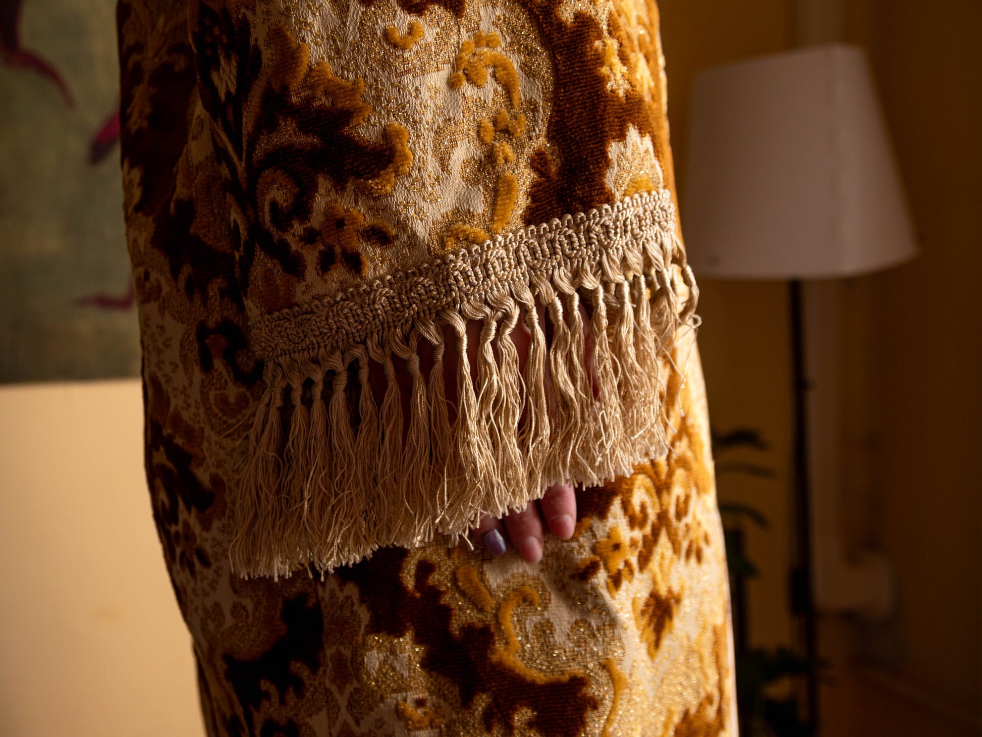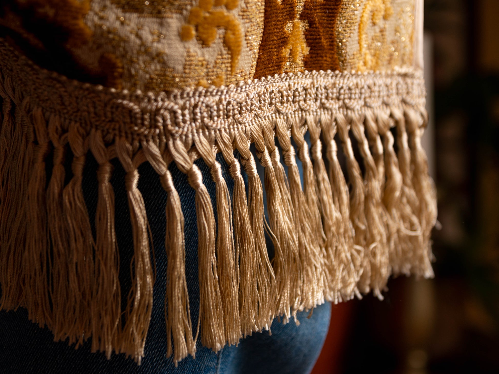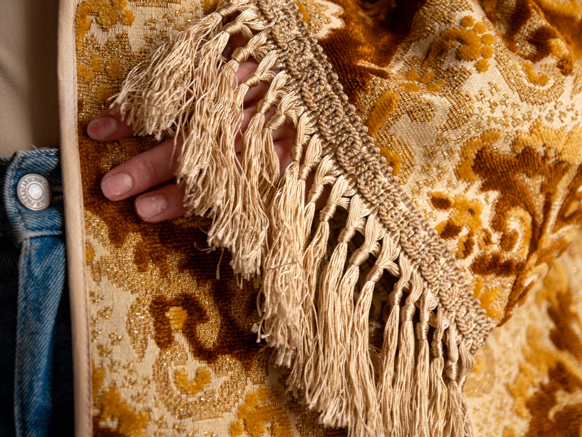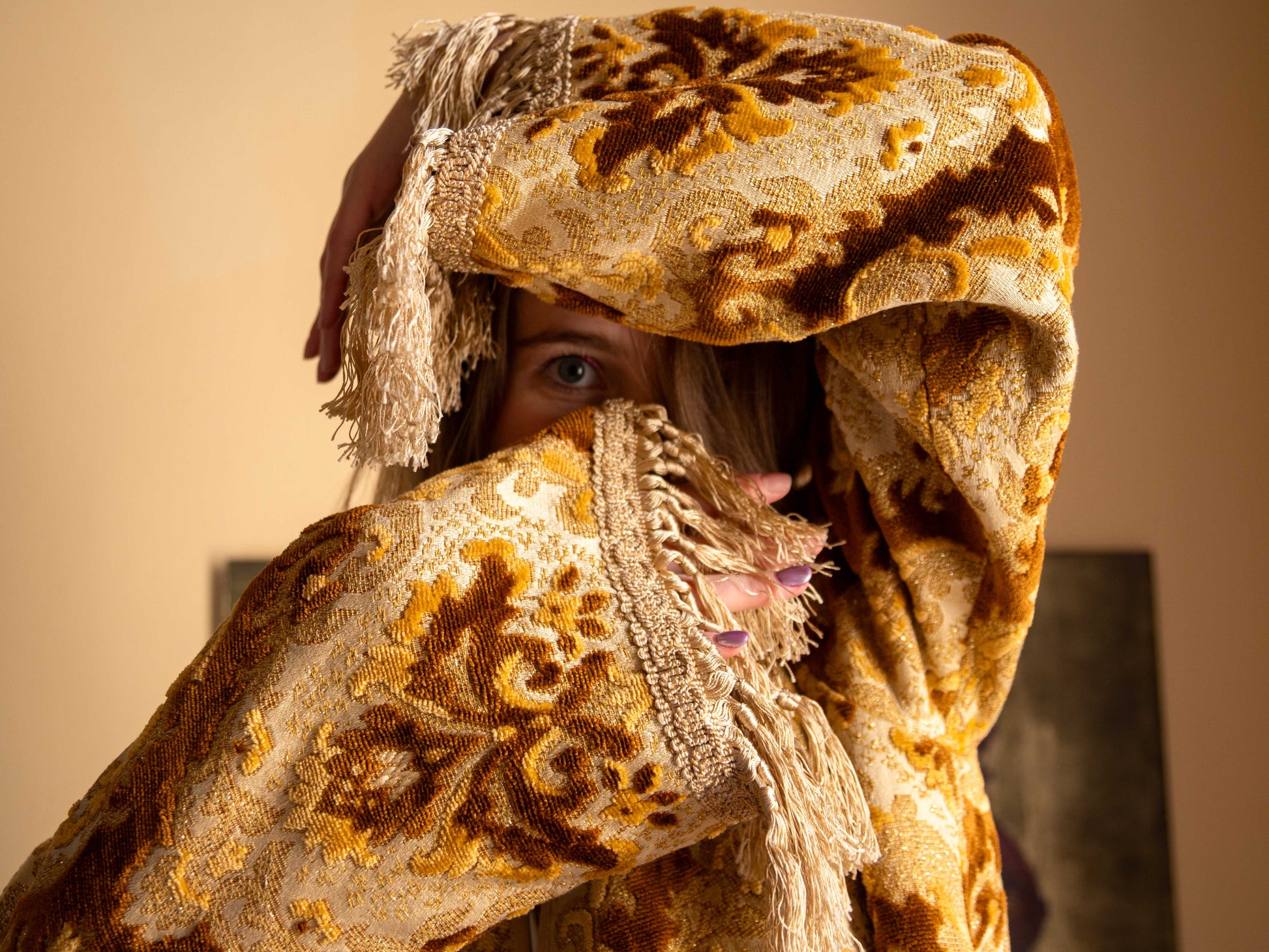 Ágytakaróból készült egyedi kabát, ami kényelmes, stílusos, meleg és puha is egyben. Ideális lehet egy egyszerű szett feldobásához, de extrább darabokkal is kombinálható.