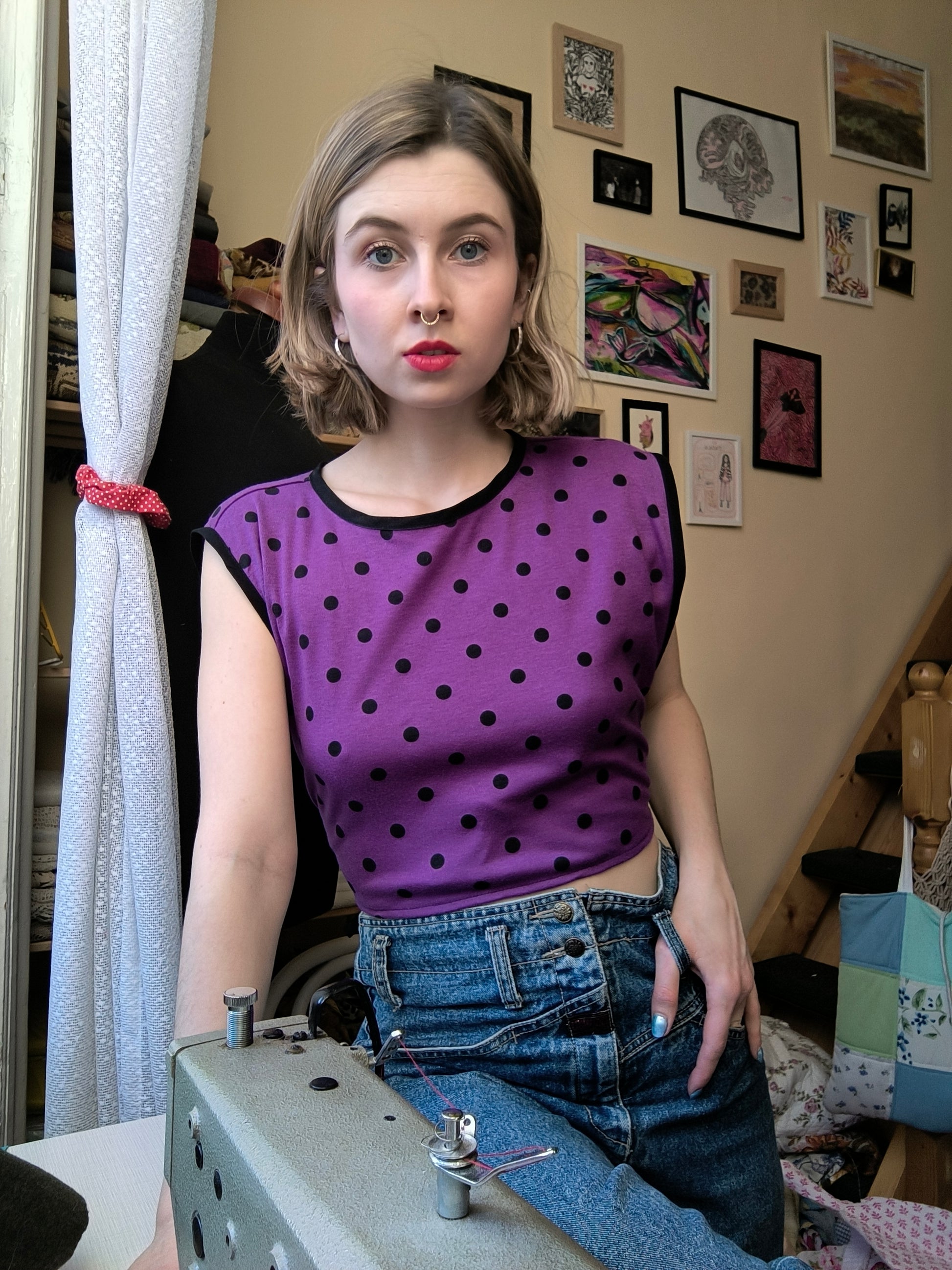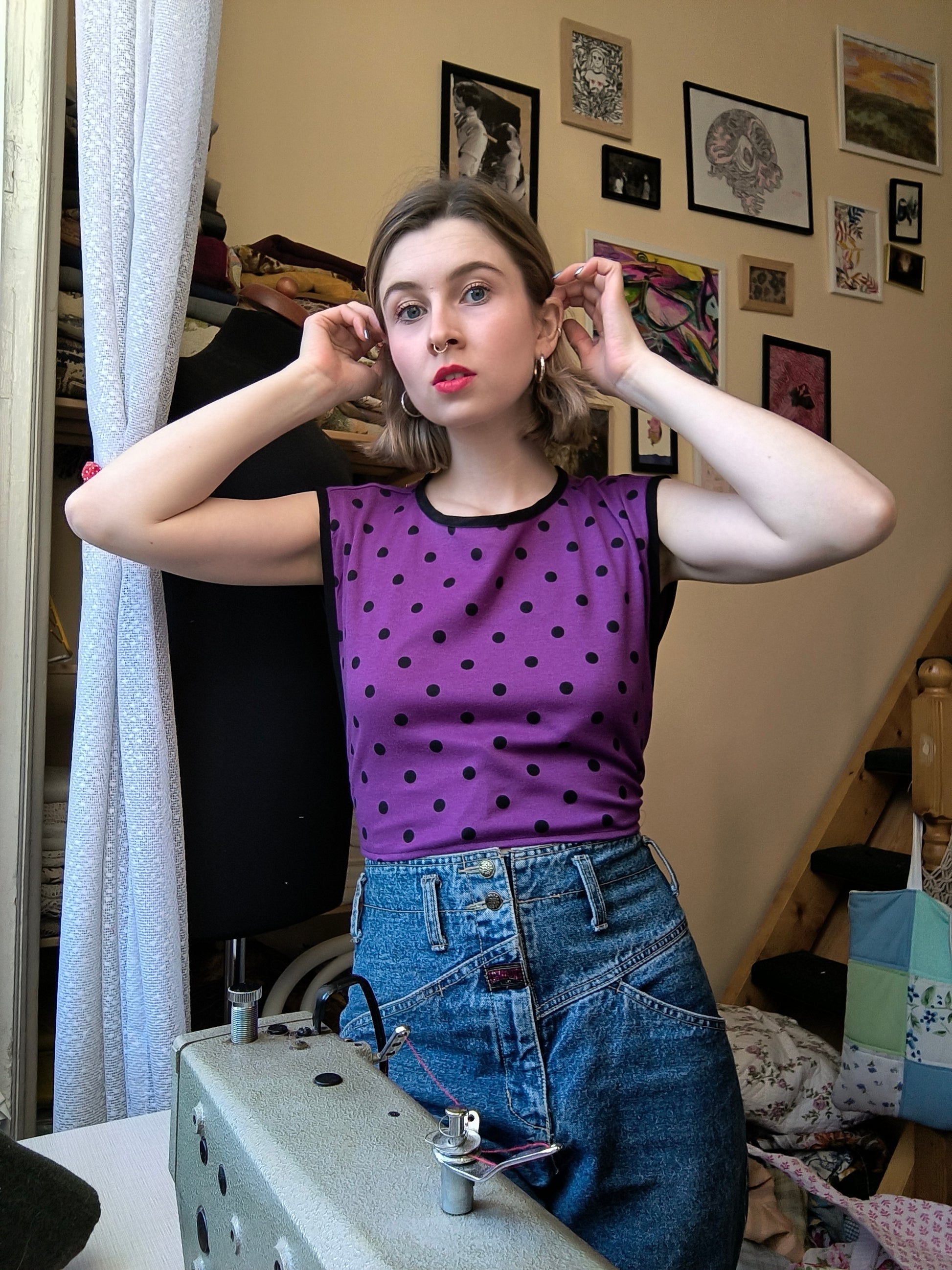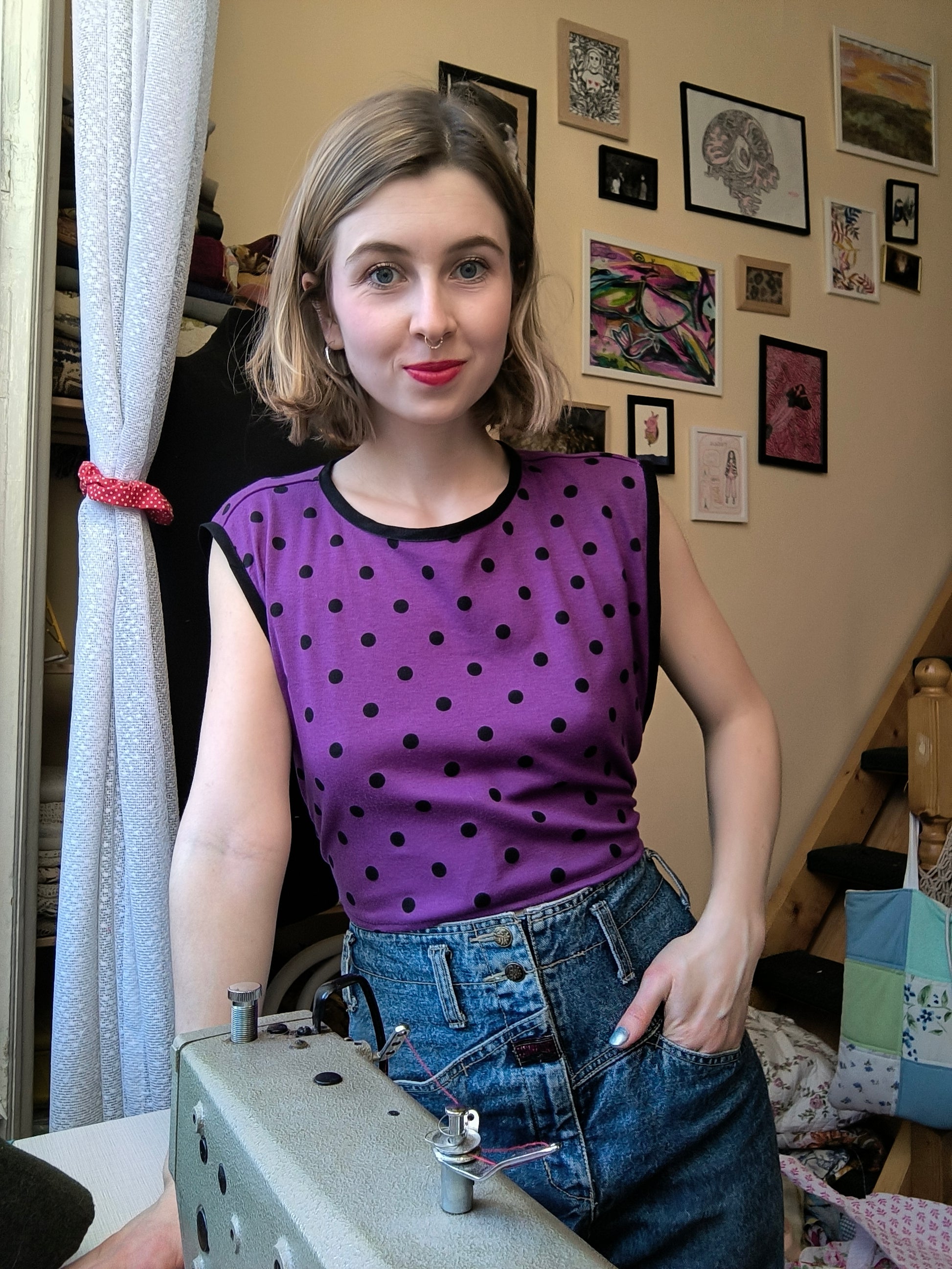 Fekete-lila pöttyös mellény