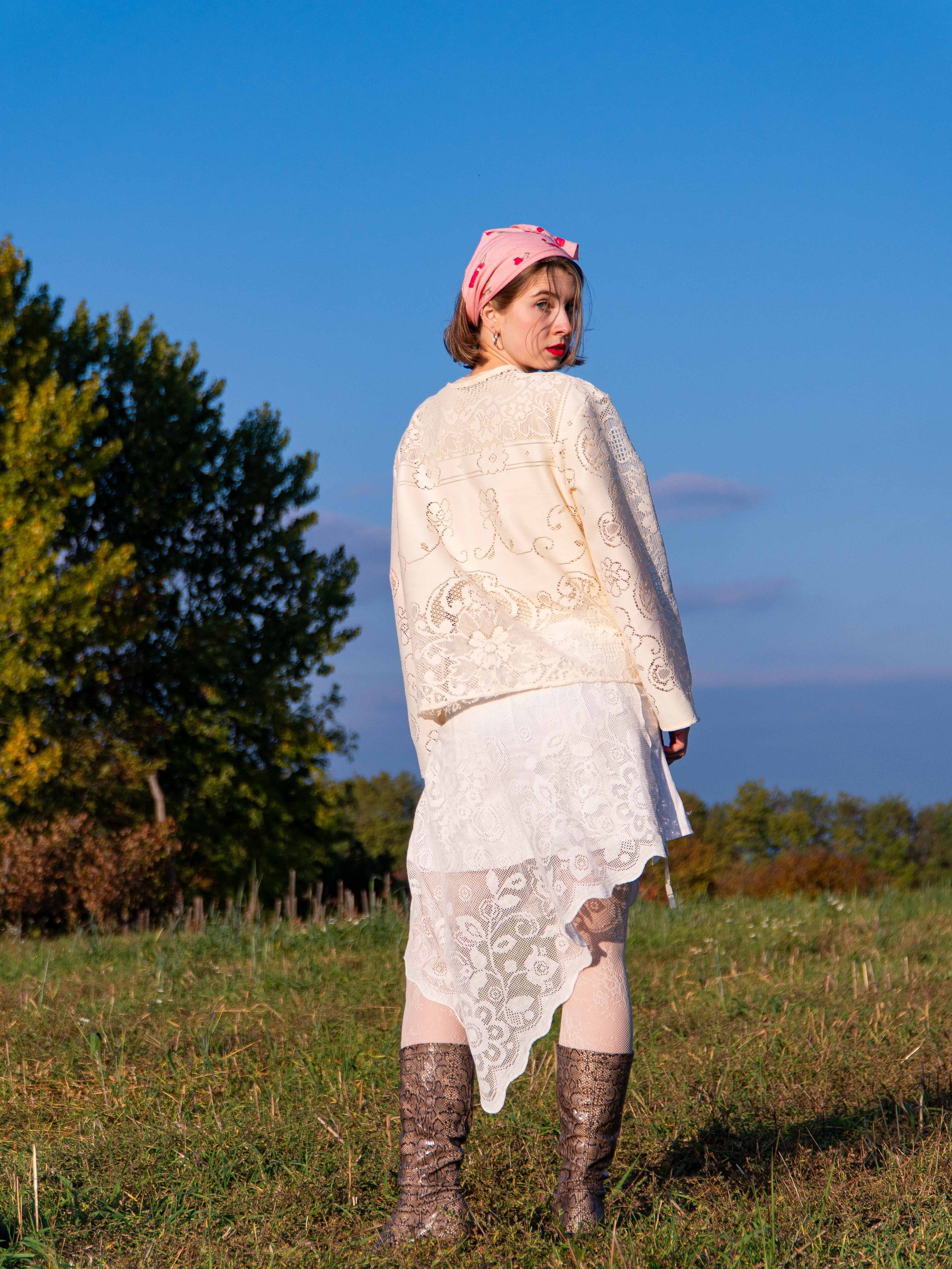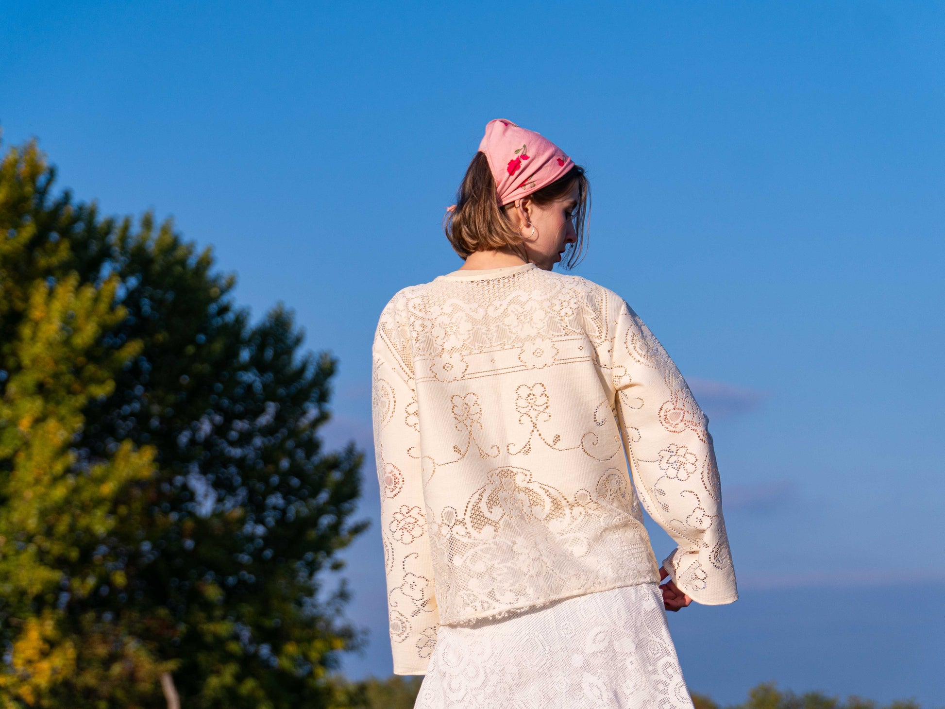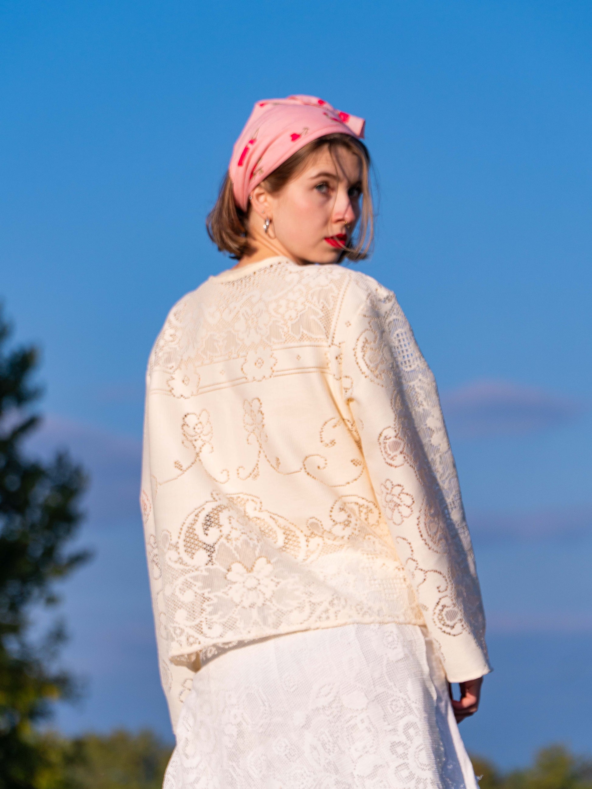 Sötétítő függönyből készült egyedi felső, ami kényelmes, stílusos is egyben. Ideális lehet egy egyszerű szett feldobásához, de extrább darabokkal is kombinálható.
