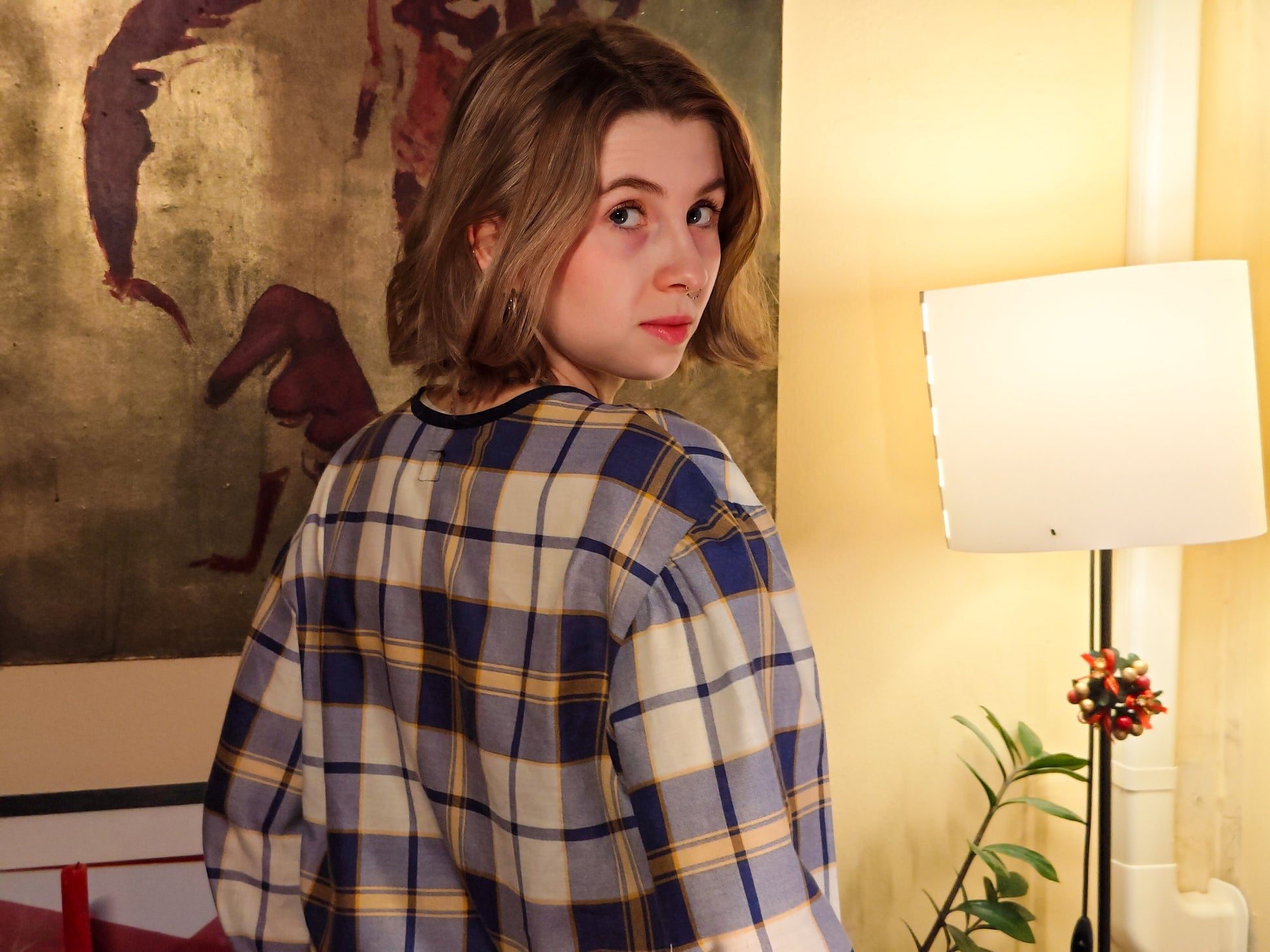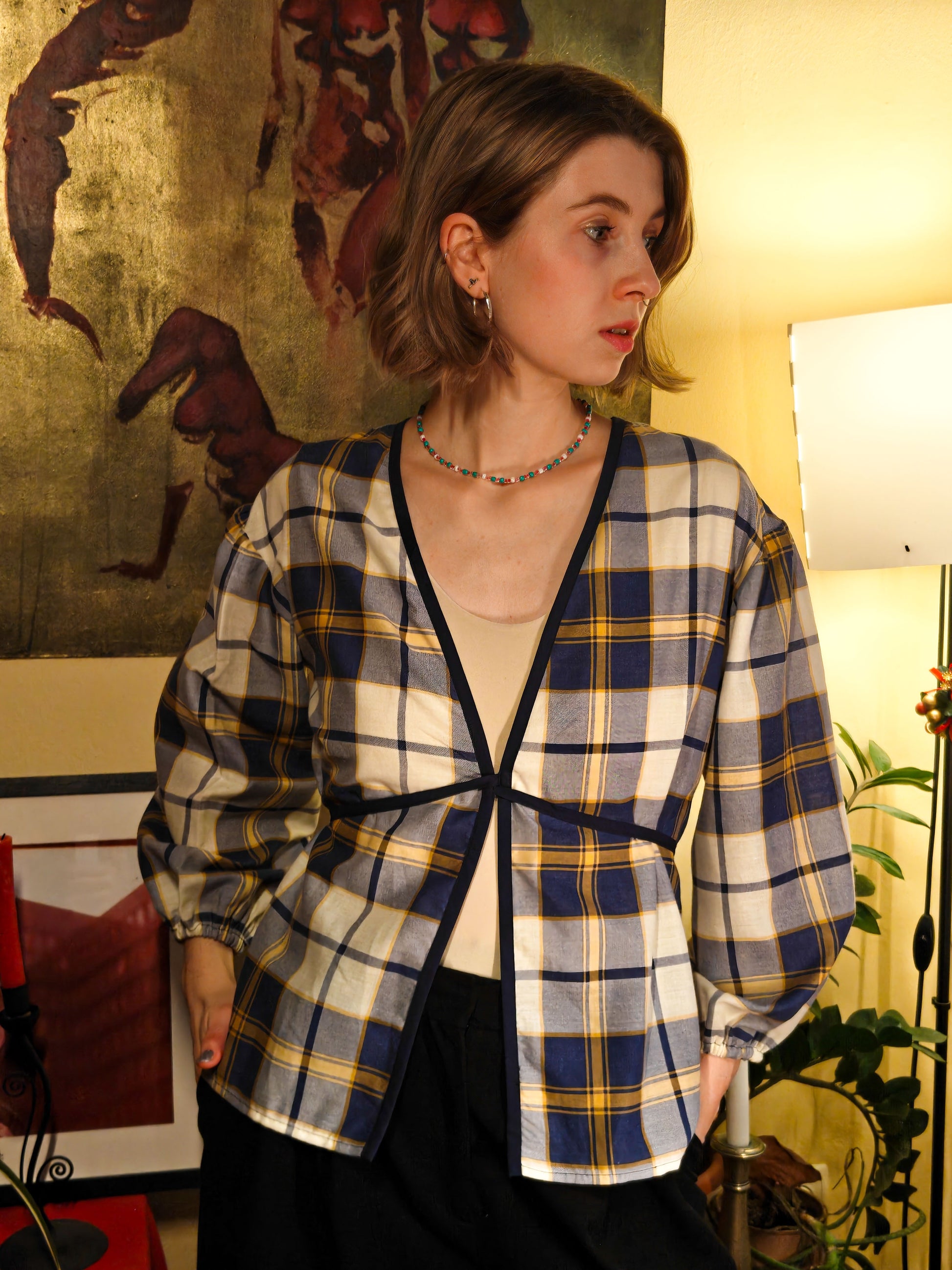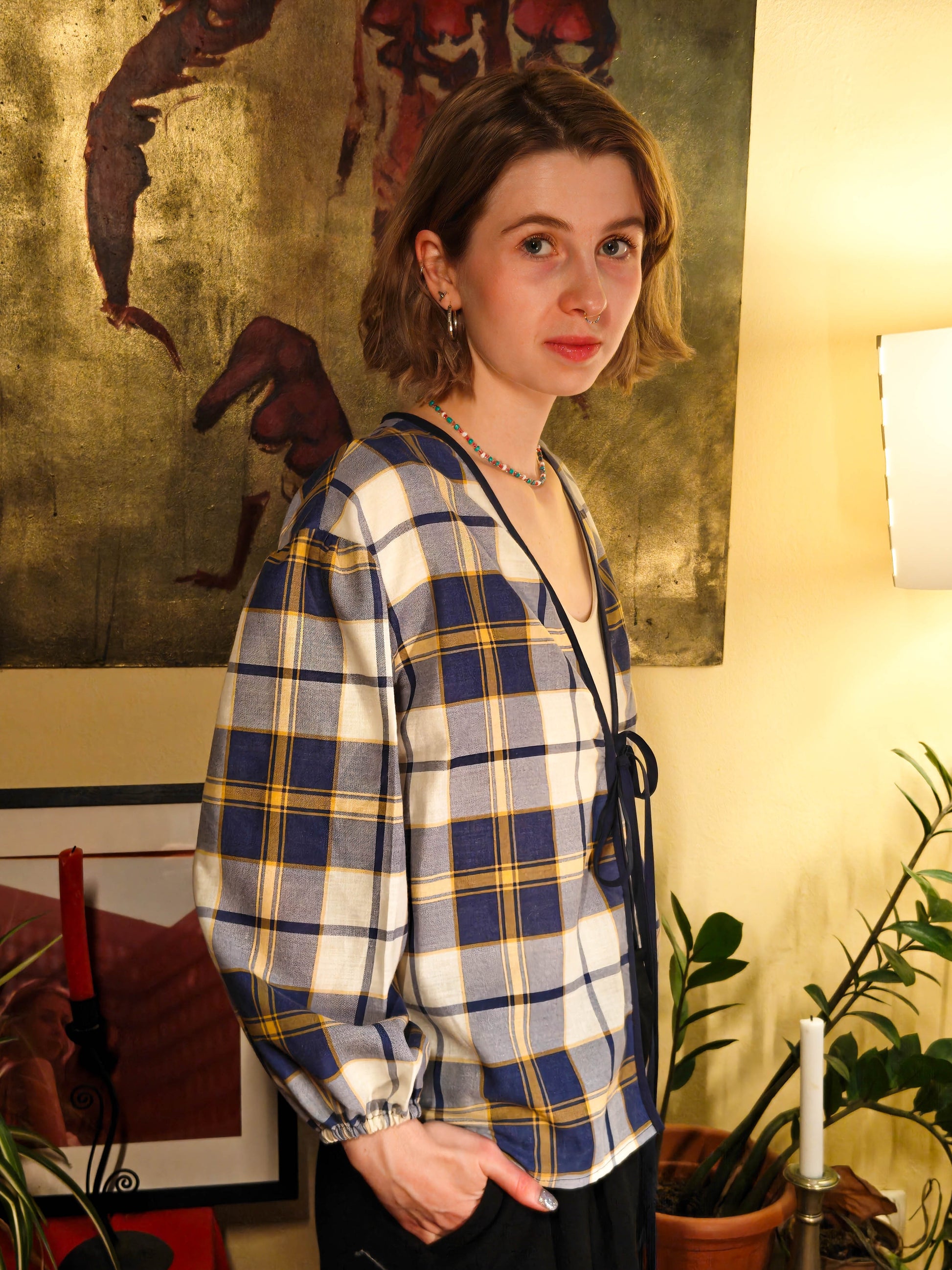 Kék kockás puffos felső