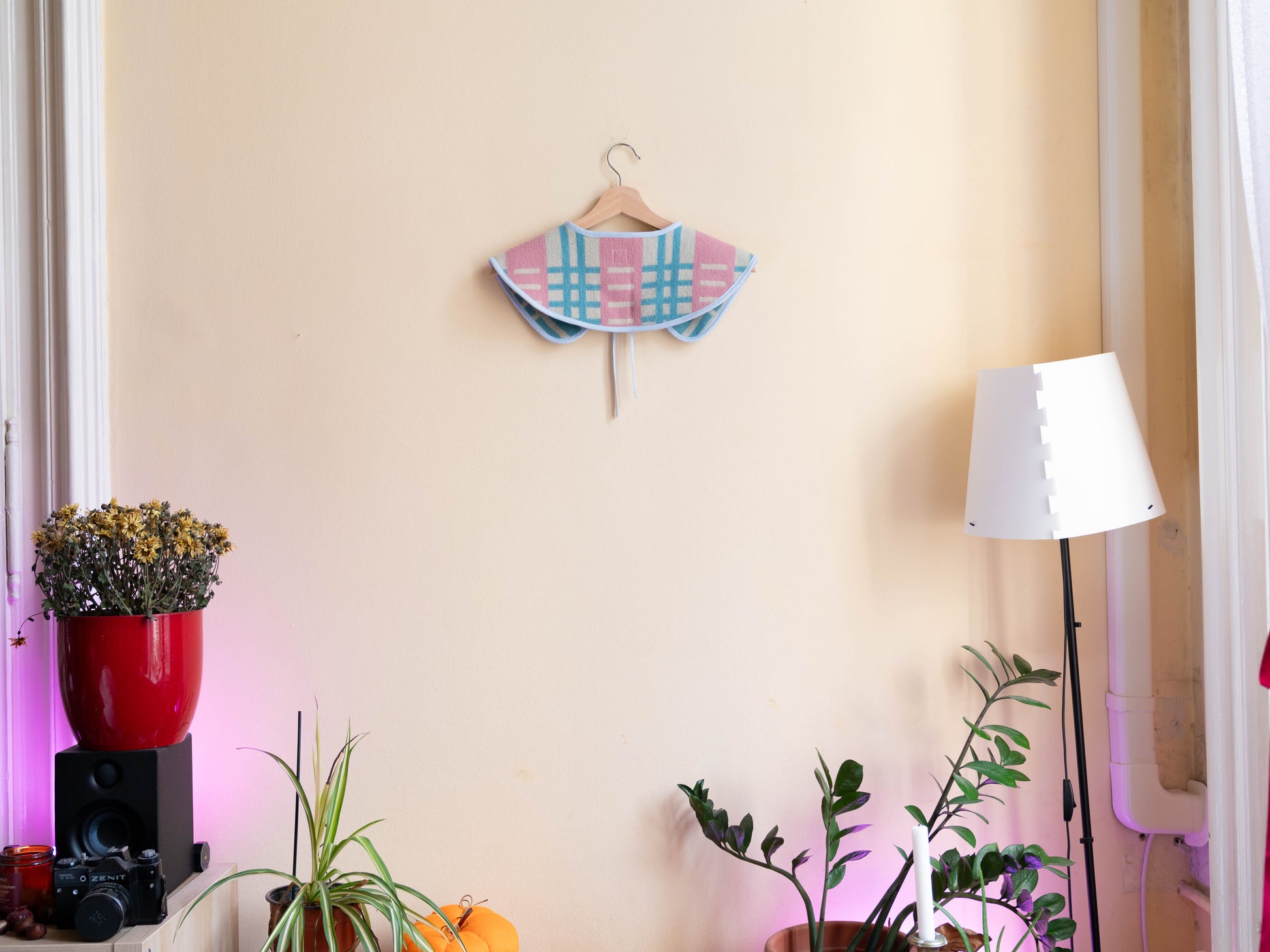 Ágytakaróból készült kétoldalas gallér, amelynek mindkét oldala más mintát kapott. Két különböző mintájú oldala miatt könnyedén variálhatod: csak fordítsd át, és máris más hangulatot ad a szettednek.