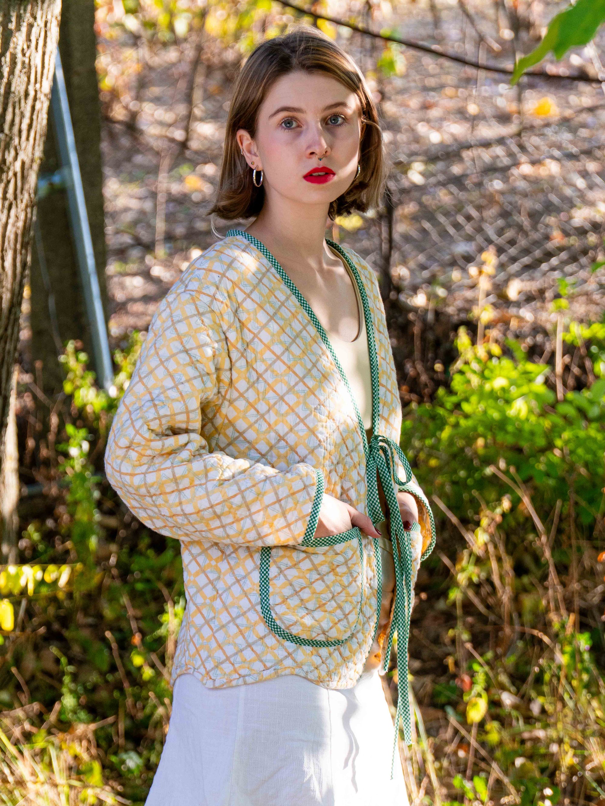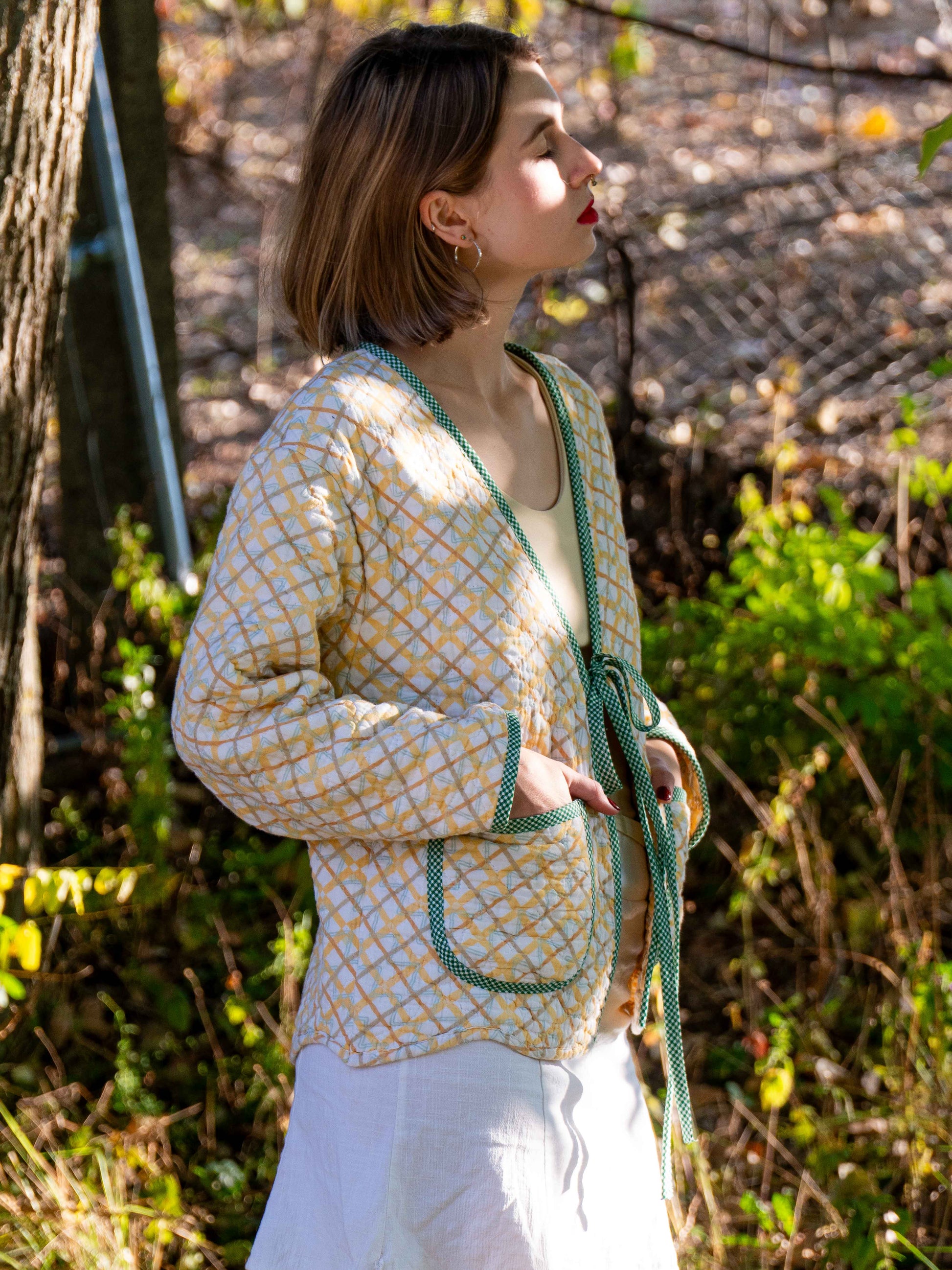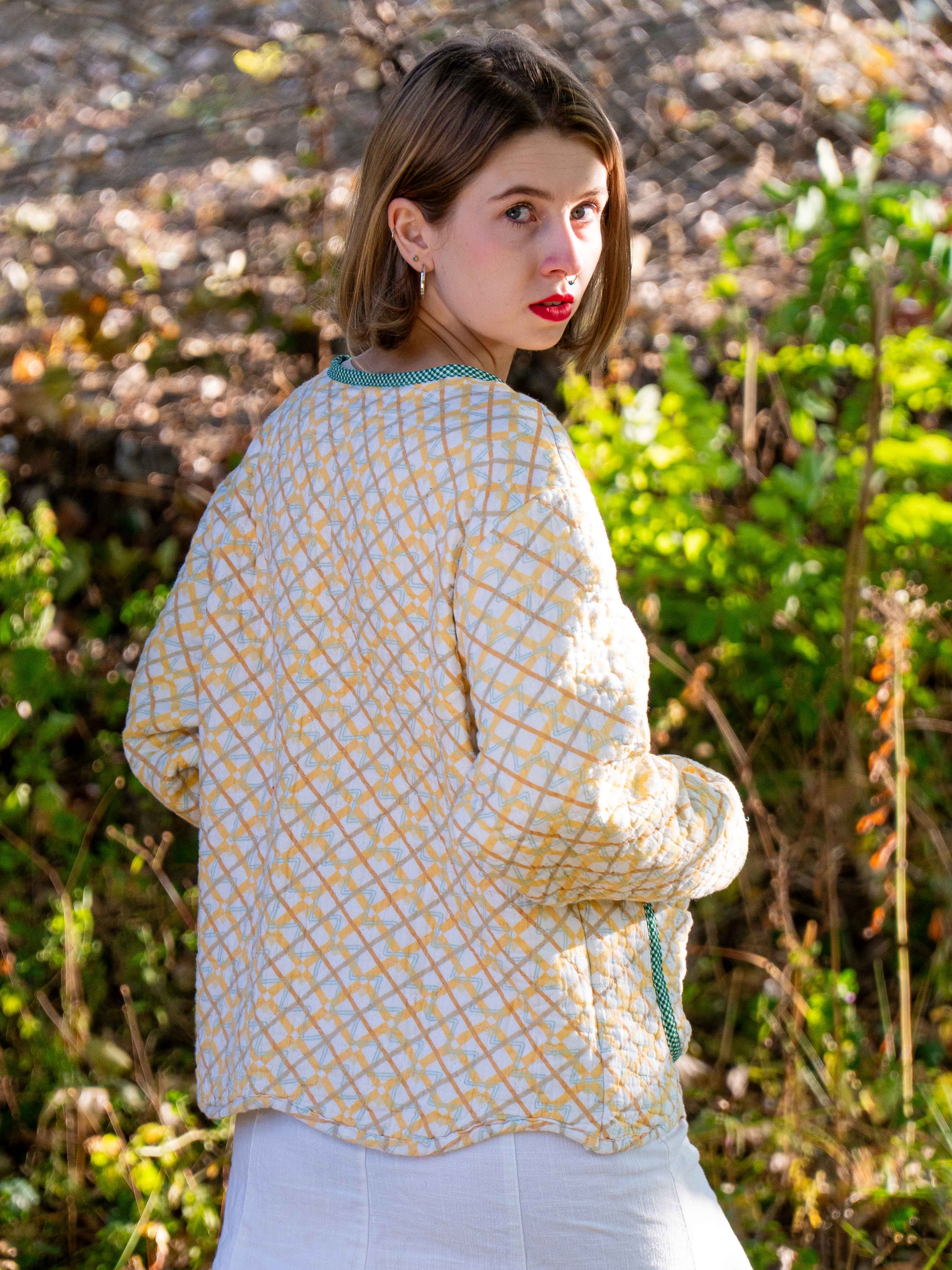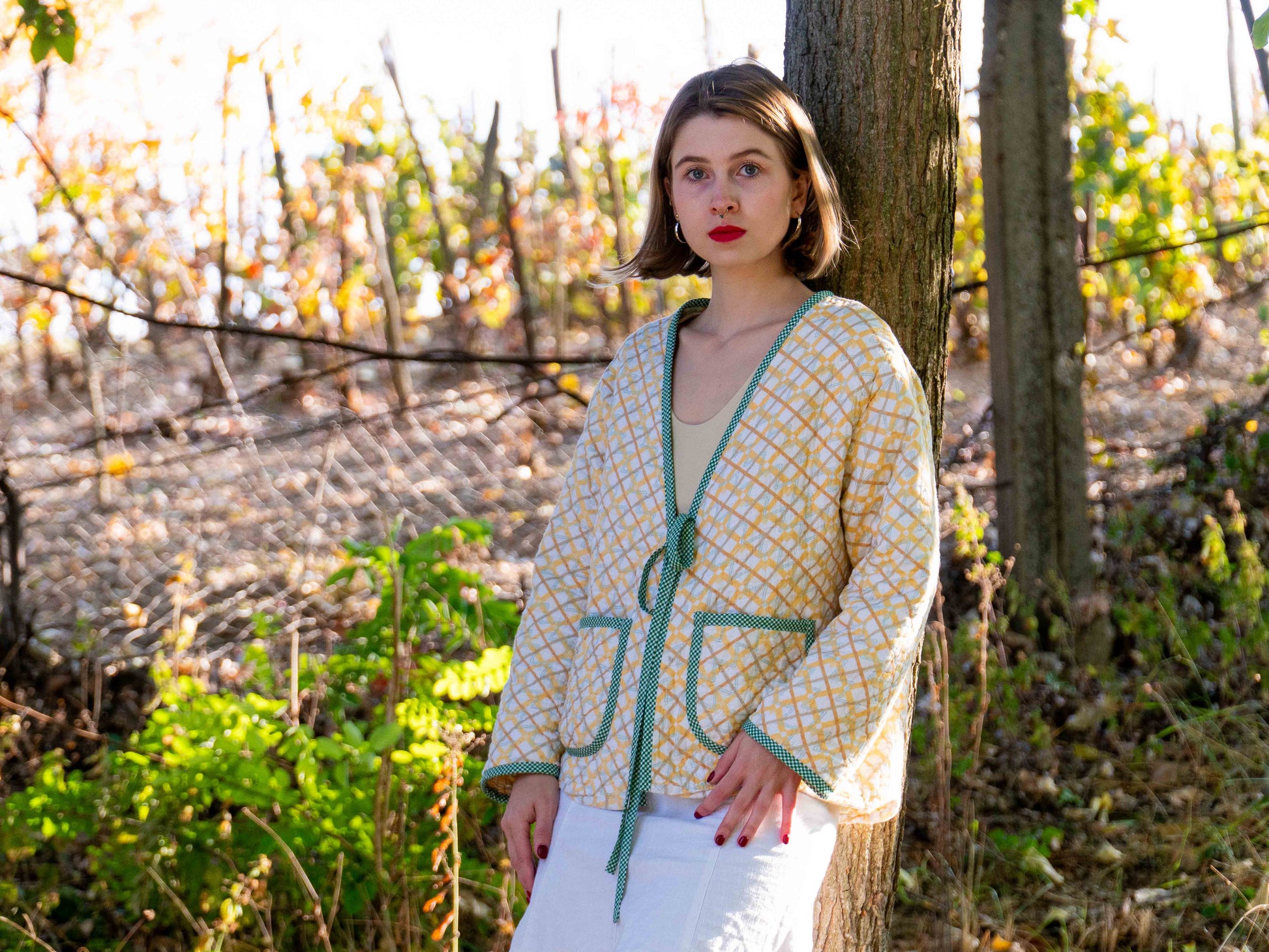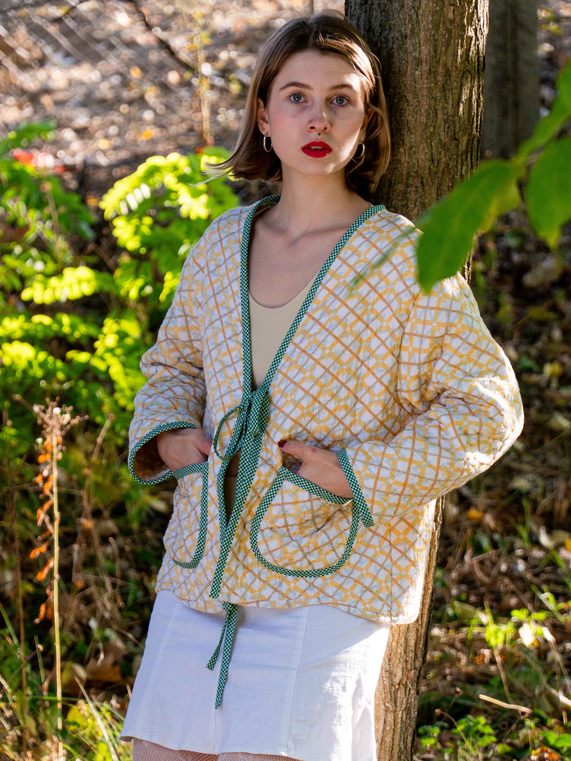 Steppelt ágytakaróból készült egyedi kabát, ami kényelmes, stílusos, meleg és puha is egyben. Ideális lehet egy egyszerű szett feldobásához, de extrább darabokkal is kombinálható.