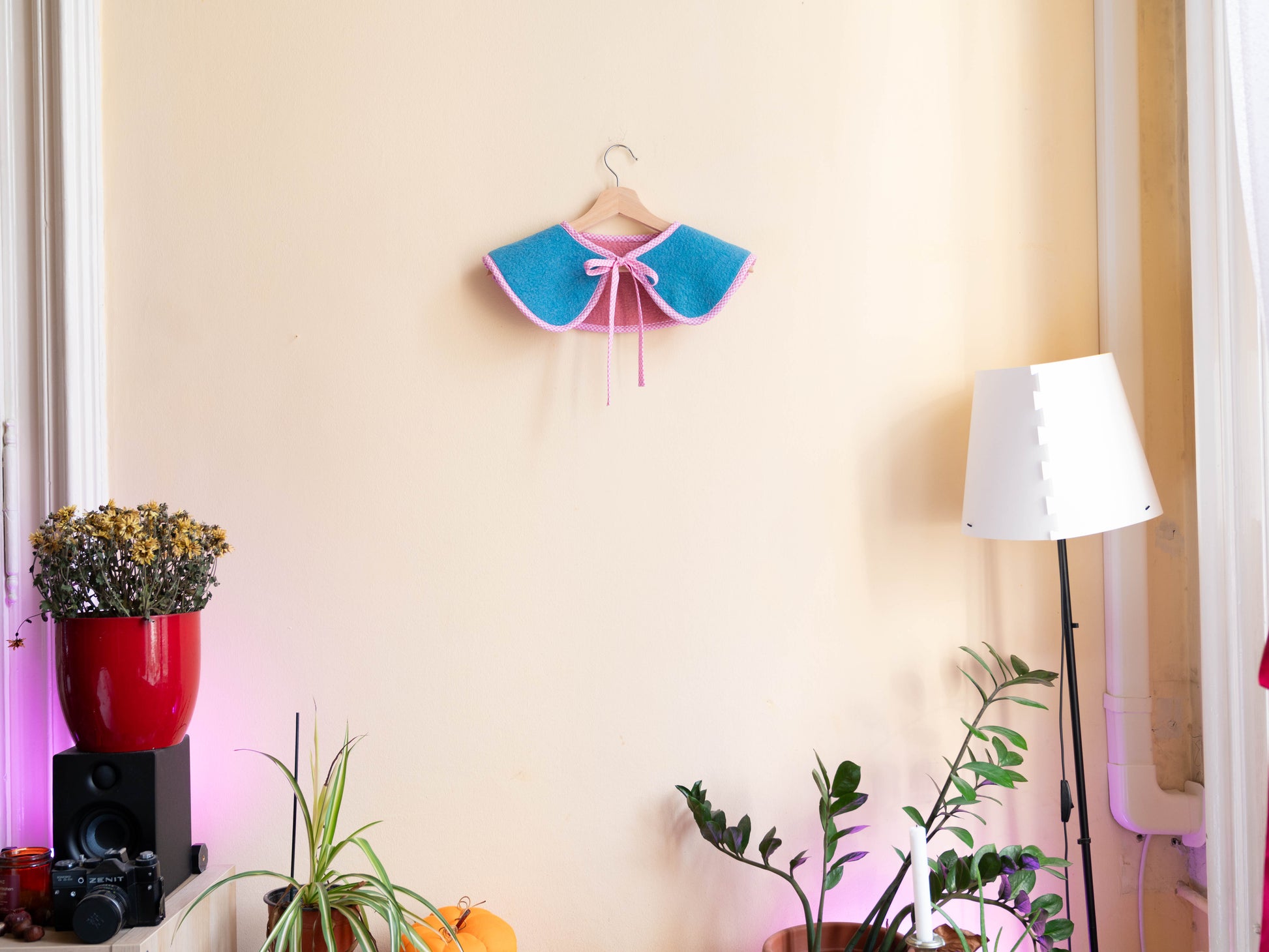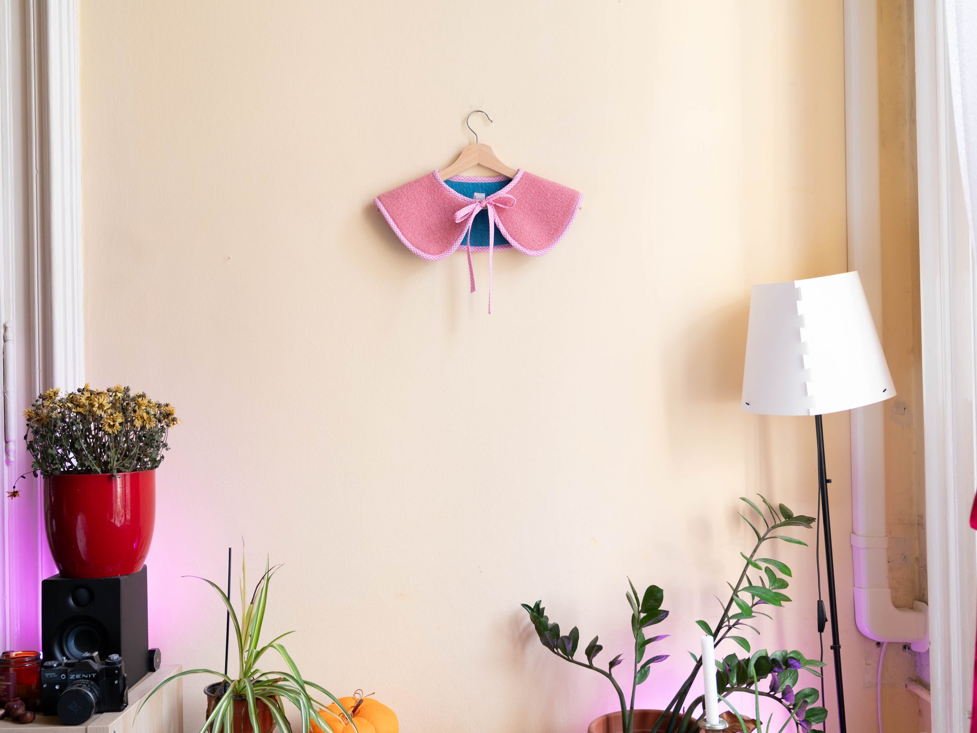 Az elöl megkötős megoldásnak köszönhetően a gallér mérete rugalmasan állítható, mégis stabilan tart. Egy egyszerű pólóra vagy ruhára is könnyedén ad hozzá egy játékos, személyes jelleget.