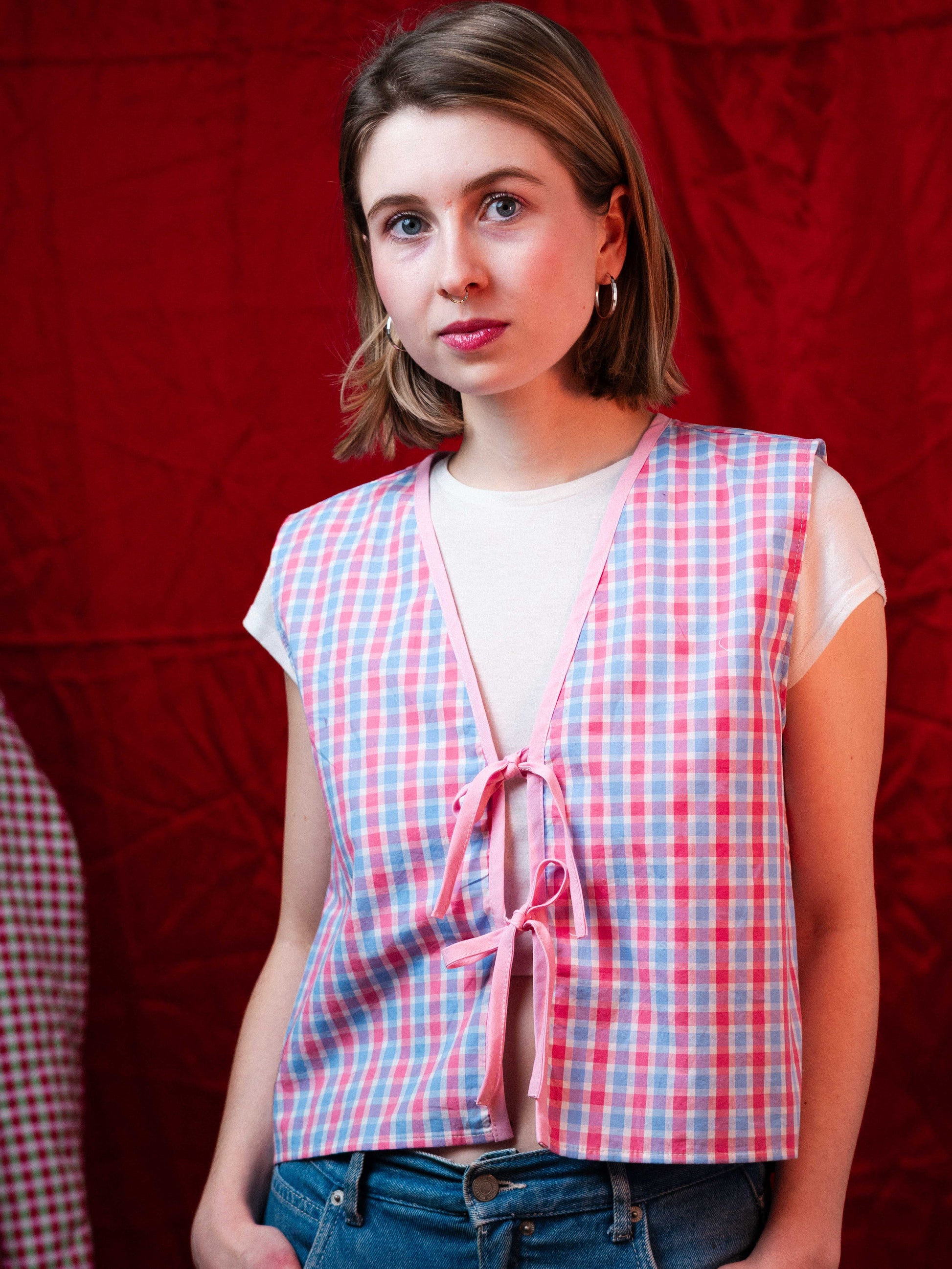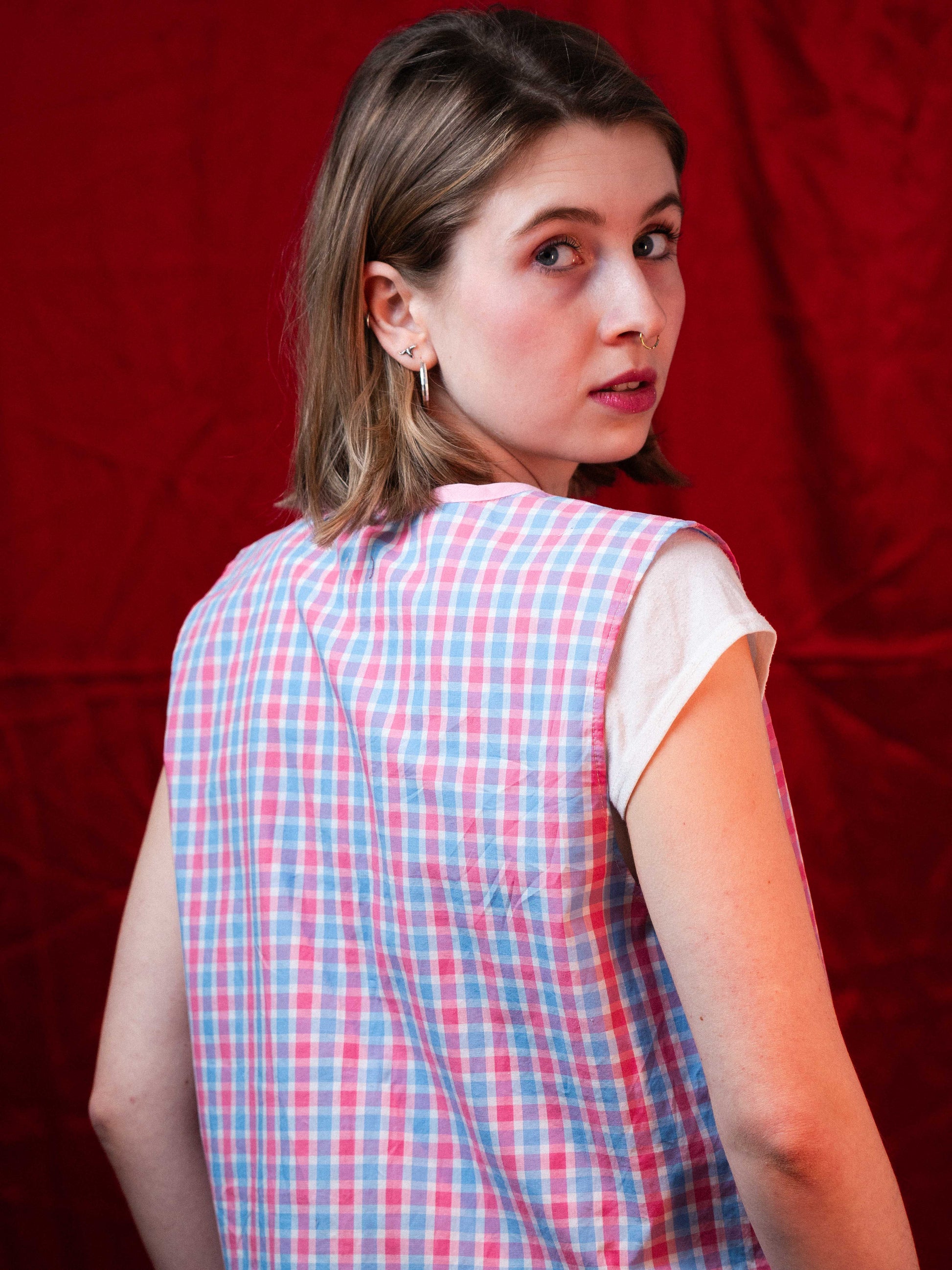 Rózsaszín kockás felső/mellény