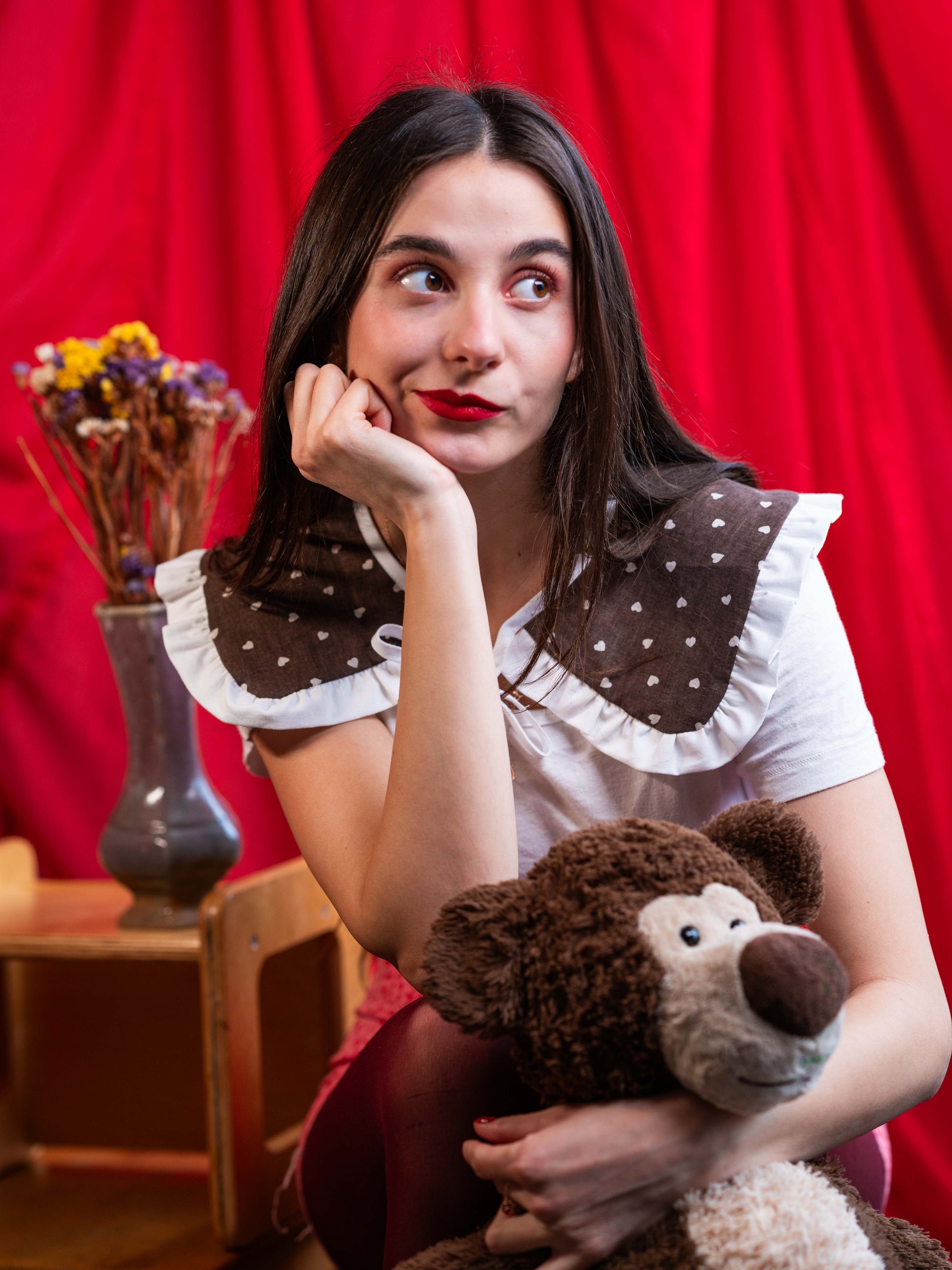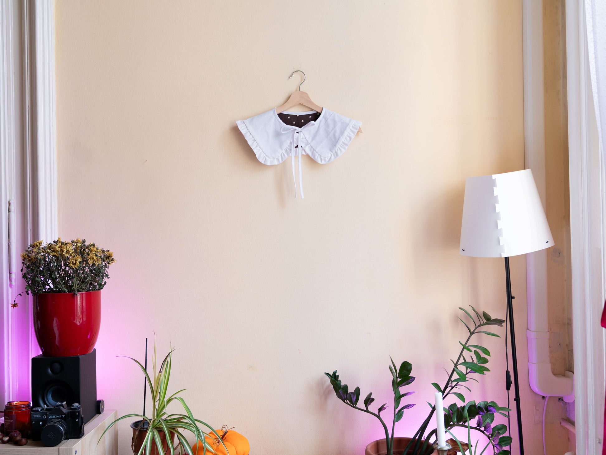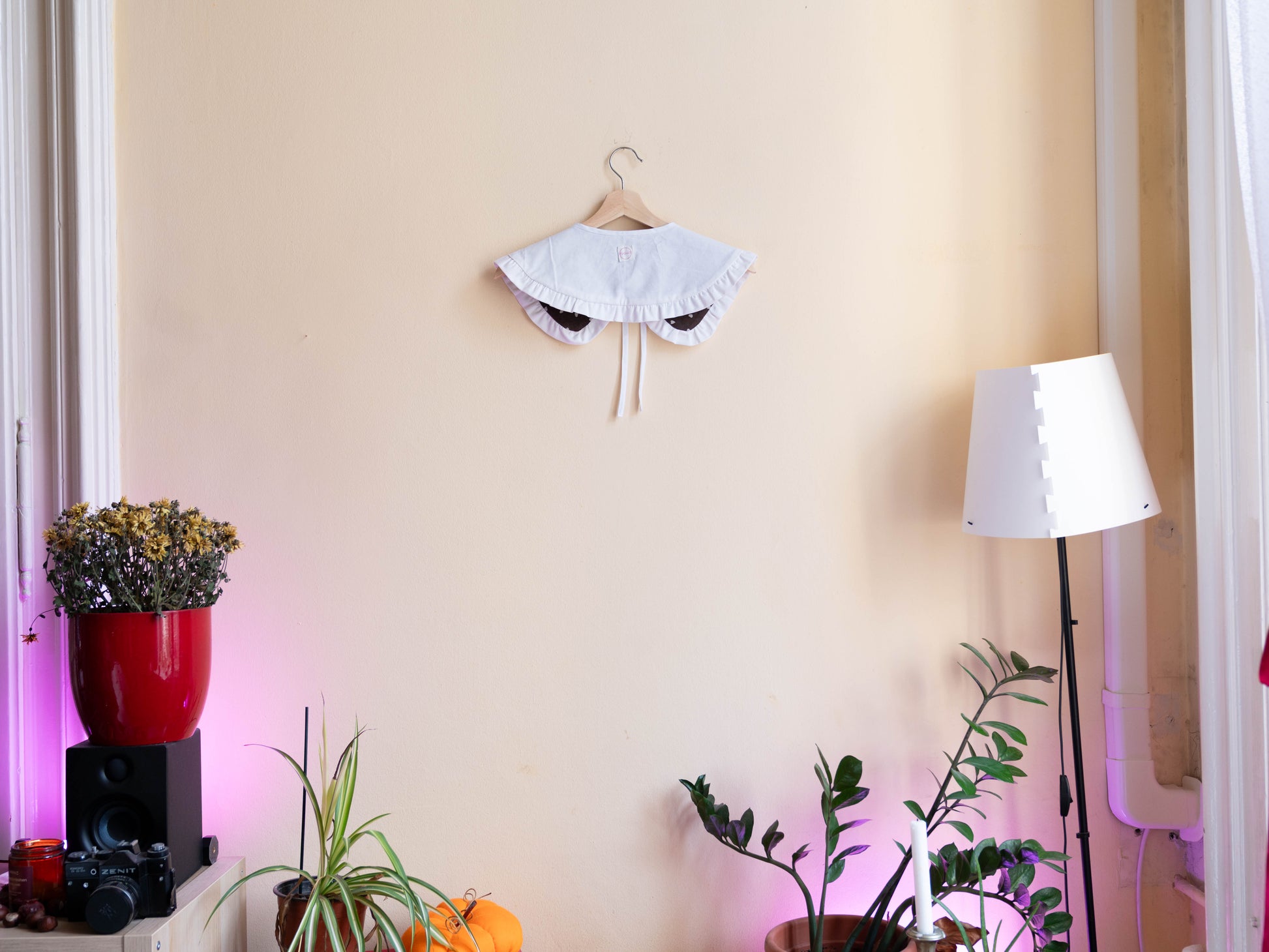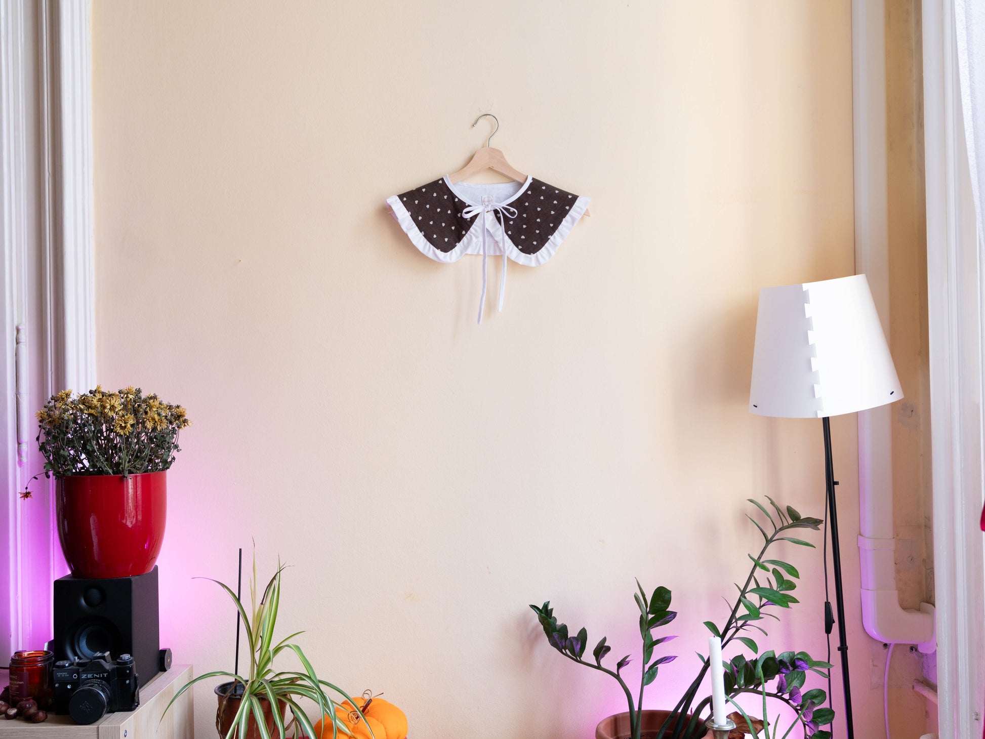 Az elöl megkötős megoldásnak köszönhetően a gallér mérete rugalmasan állítható, mégis stabilan tart. Egy egyszerű pólóra vagy ruhára is könnyedén ad hozzá egy játékos, személyes jelleget.