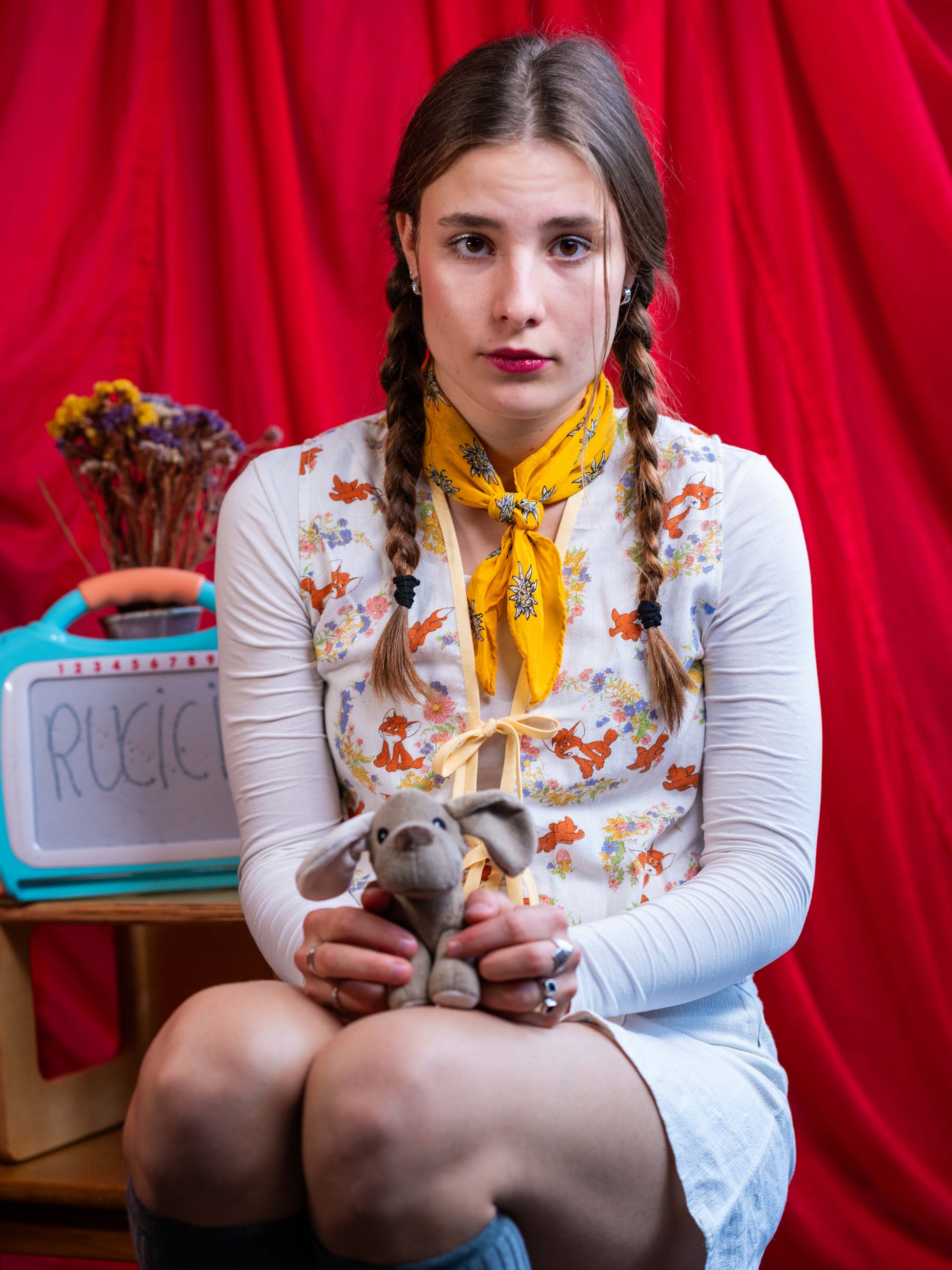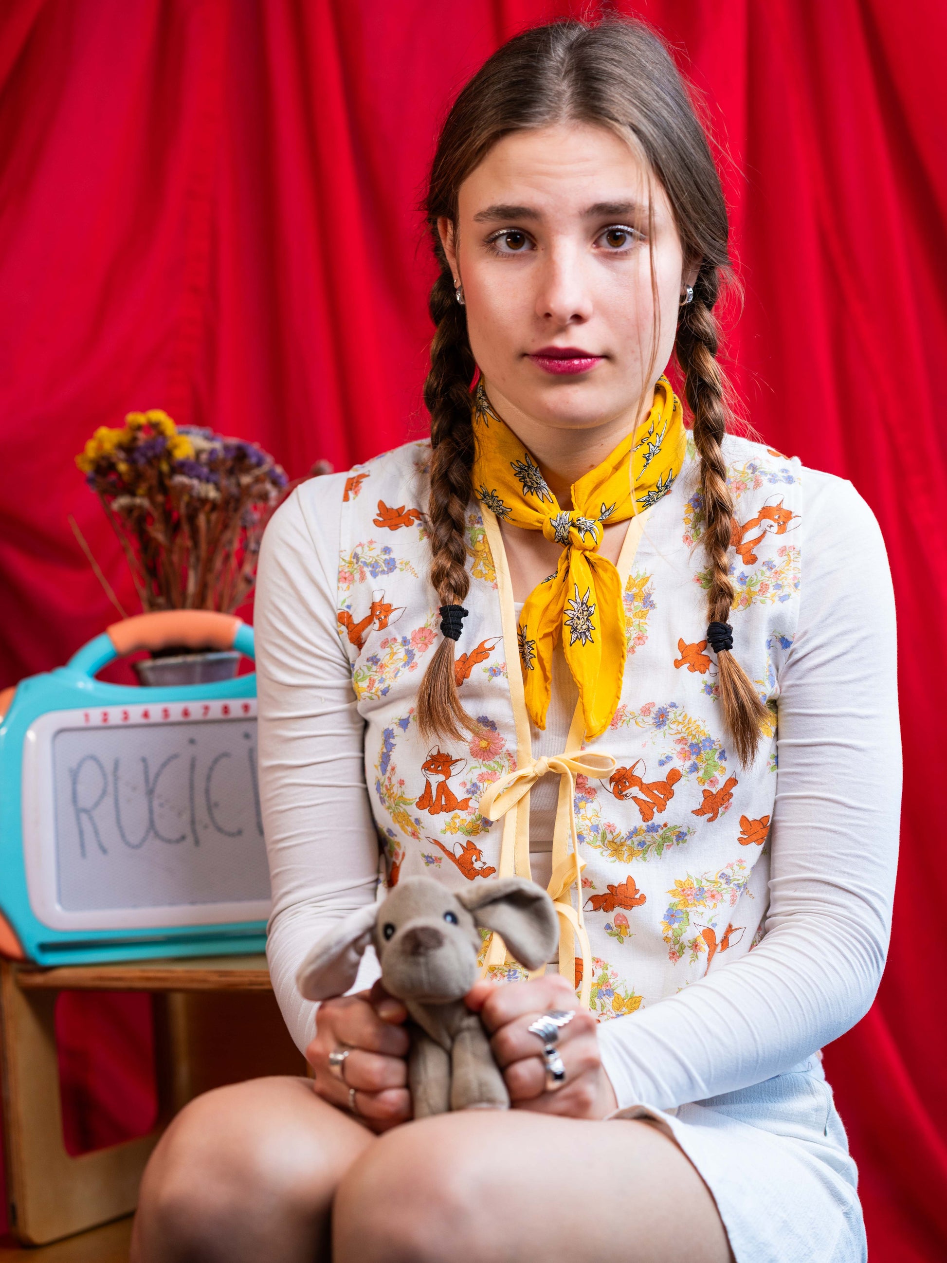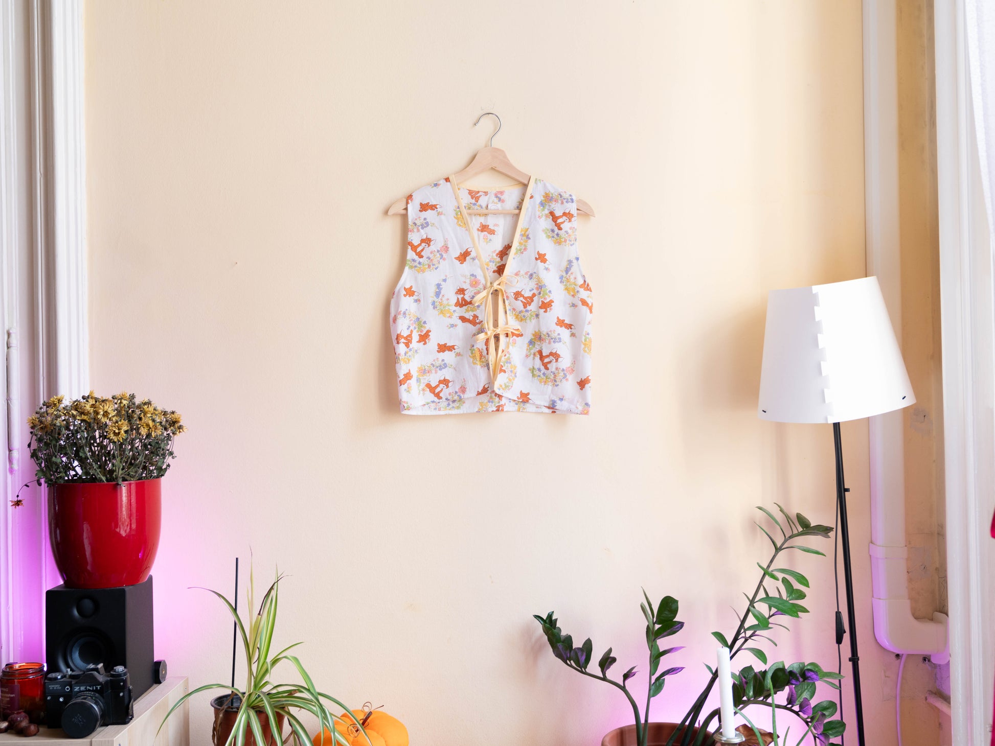 Ágyneműhuzatból készült, ujjatlan, masnis megkötős blúz. Laza szabásának köszönhetően könnyed és jól szellőzik, akár mellényként is hordható.