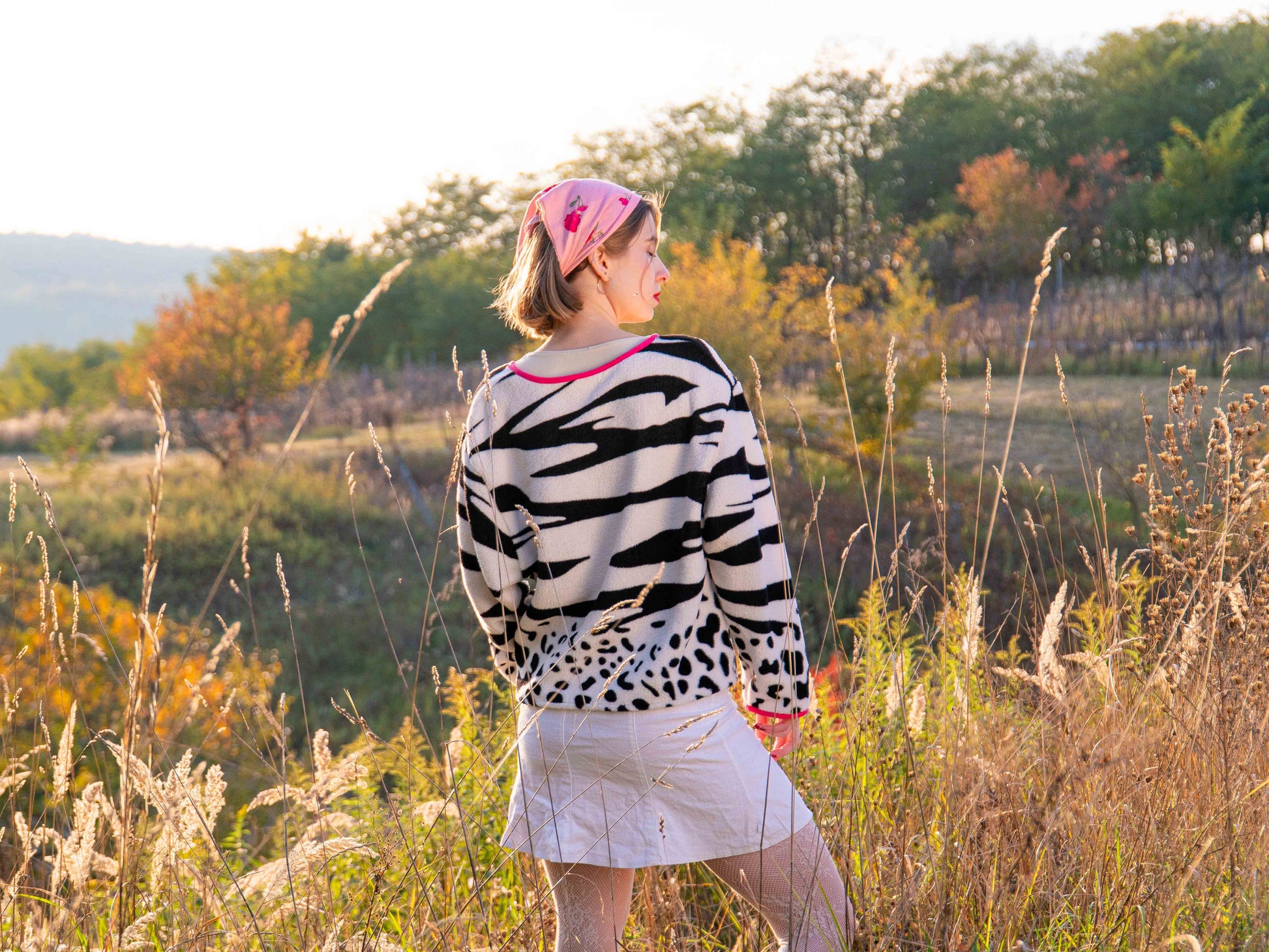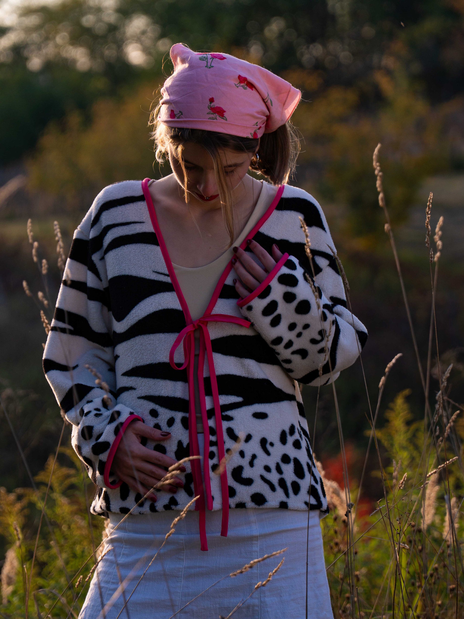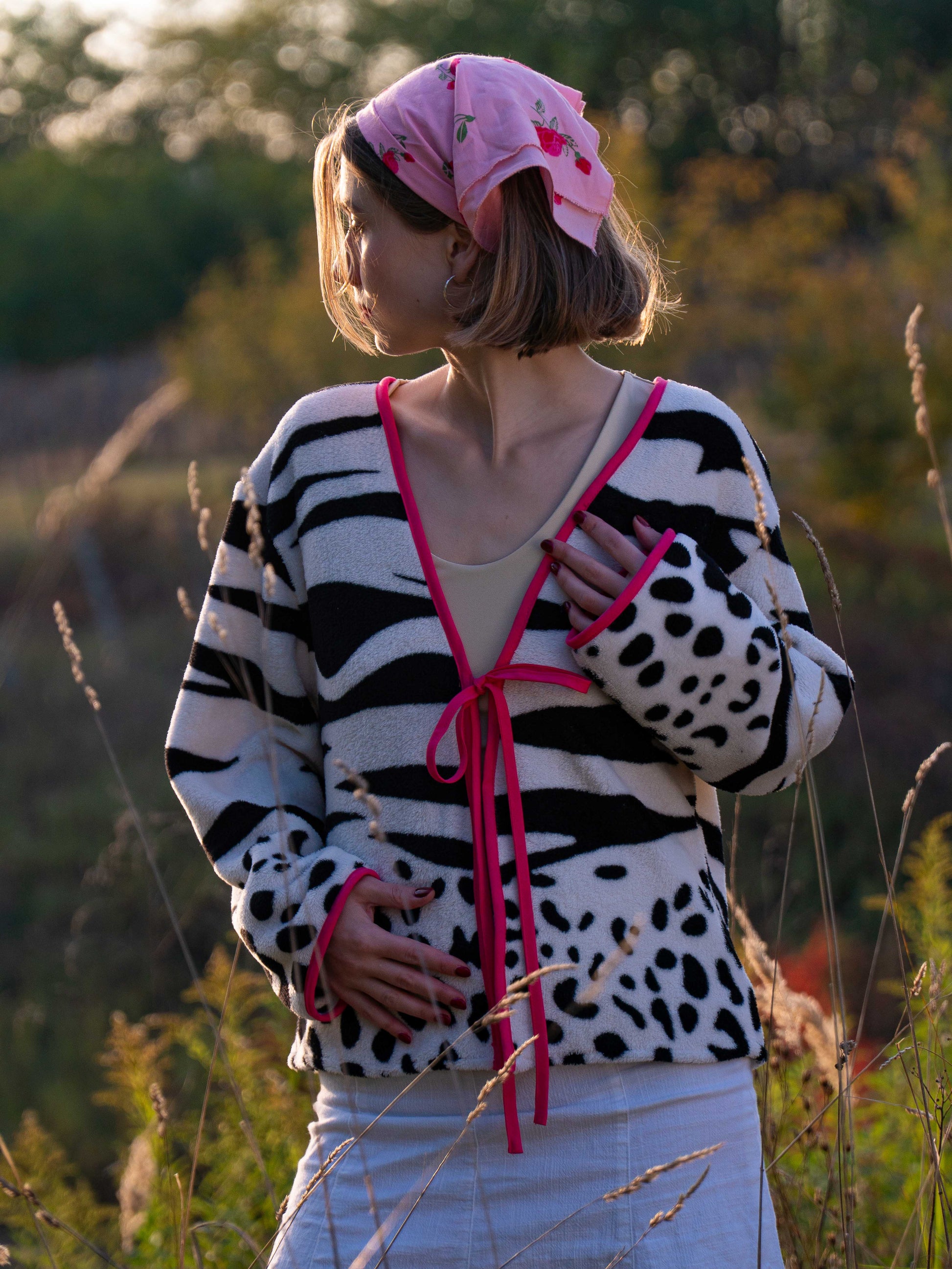 Pokrocból készült egyedi kardigán, ami kényelmes, puha, meleg, stílusos is egyben. Ideális lehet egy egyszerű szett feldobásához, de extrább darabokkal is kombinálható.