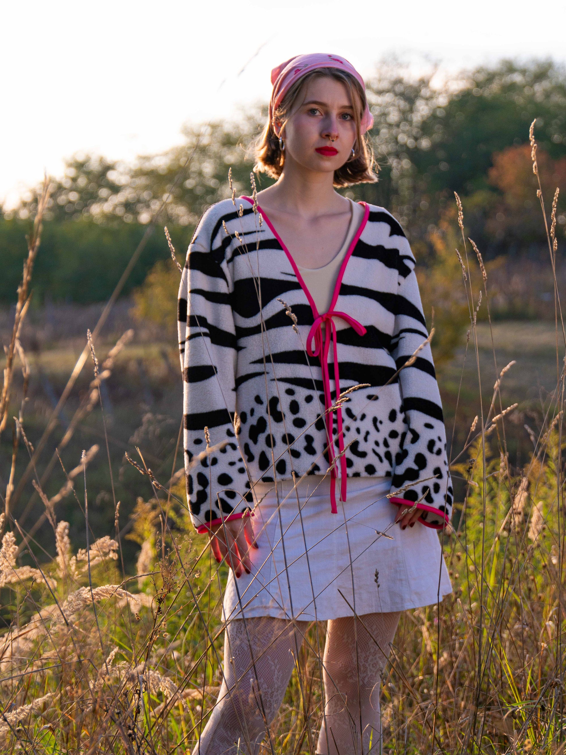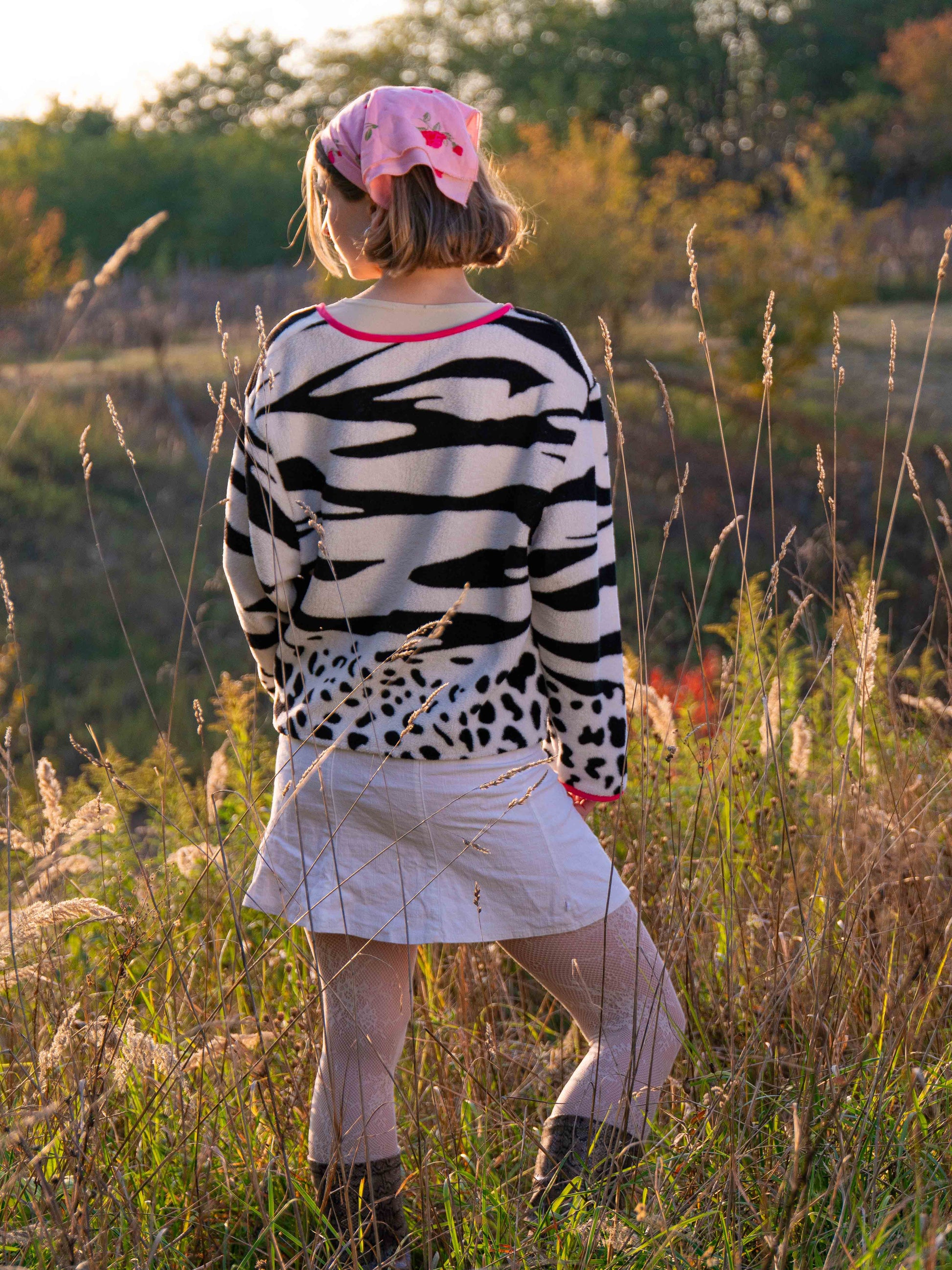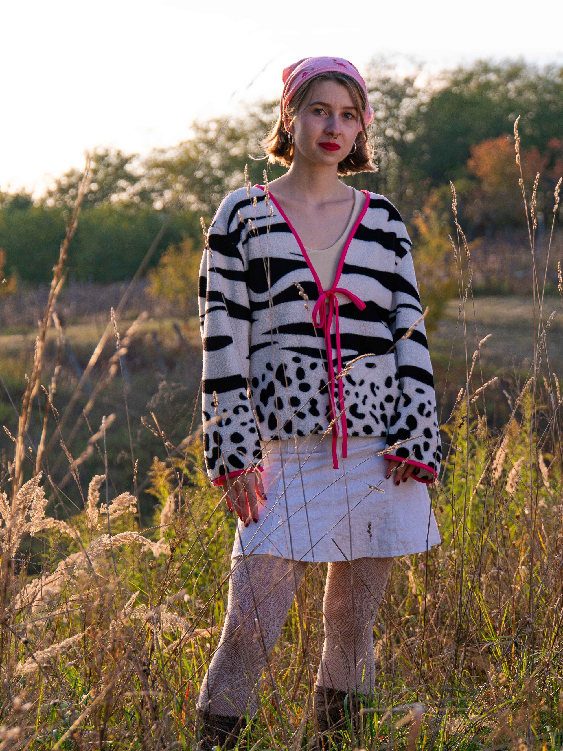 Pokrocból készült egyedi kardigán, ami kényelmes, puha, meleg, stílusos is egyben. Ideális lehet egy egyszerű szett feldobásához, de extrább darabokkal is kombinálható.