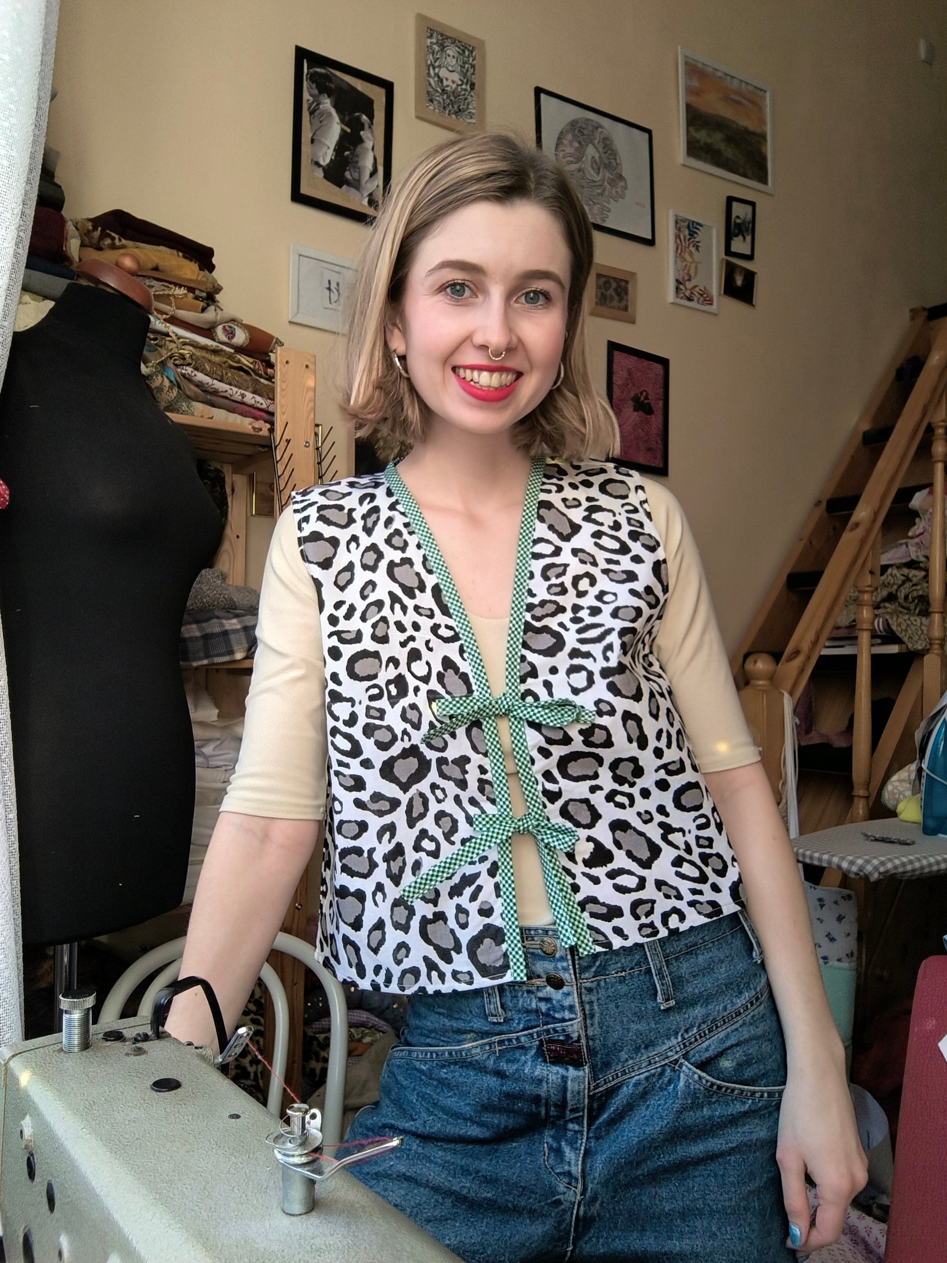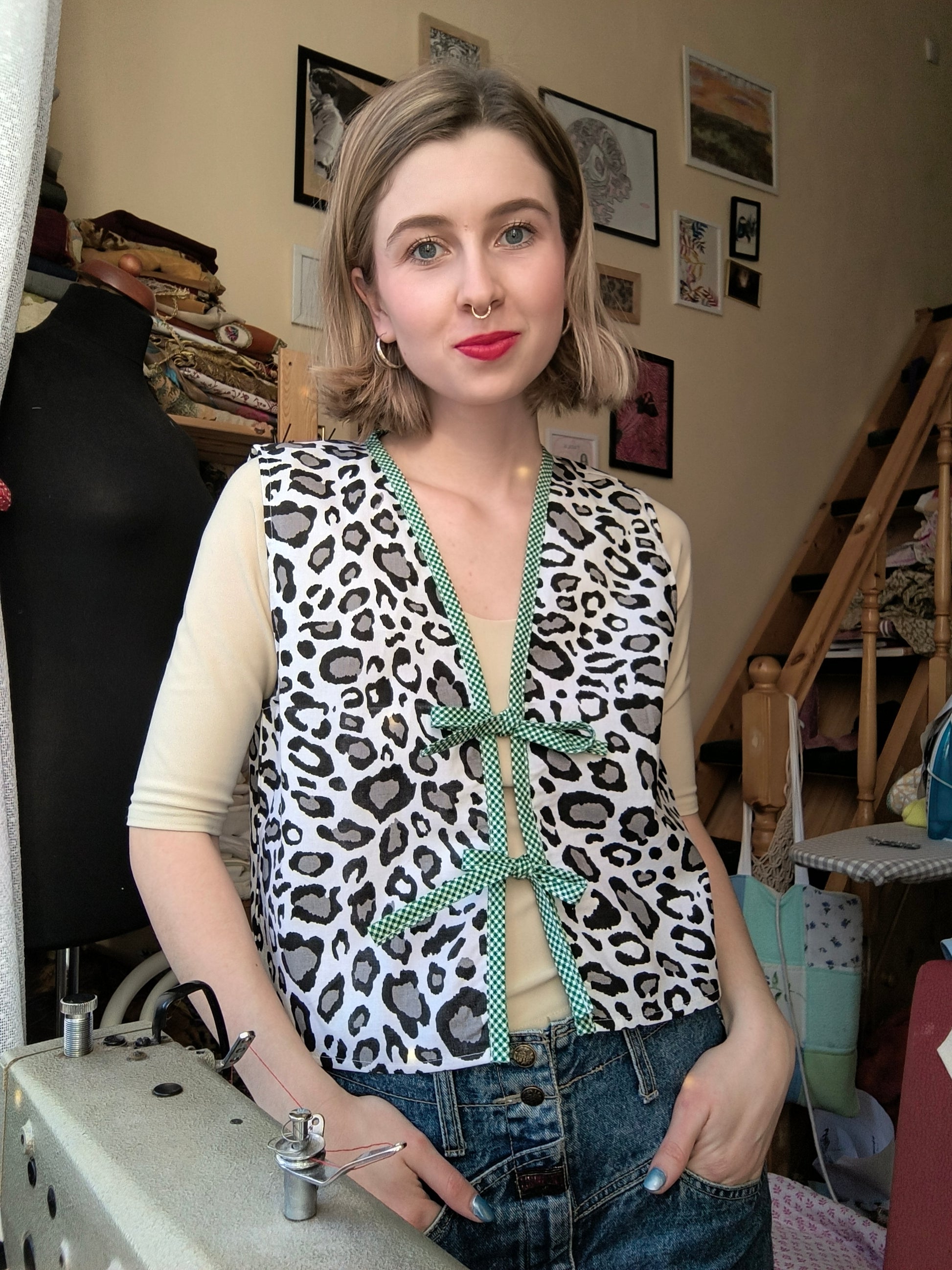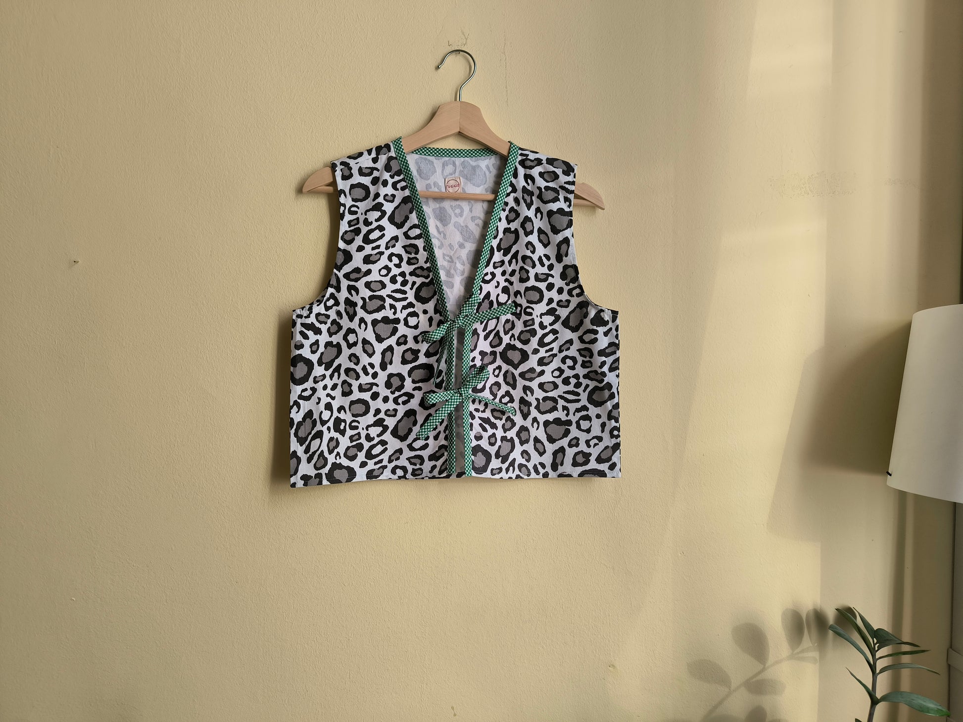 Párducmintás mellény zöld kockás szegéllyel